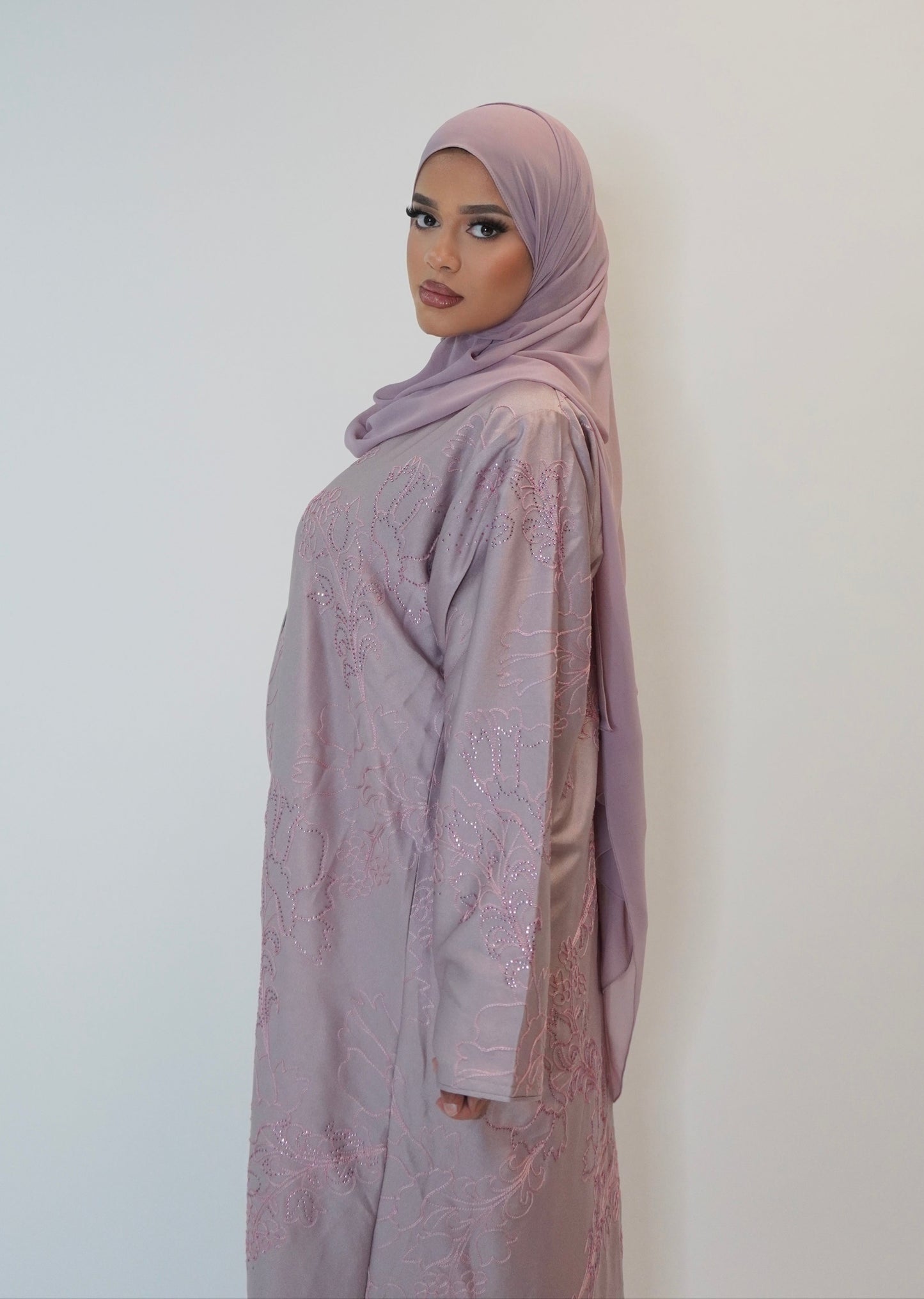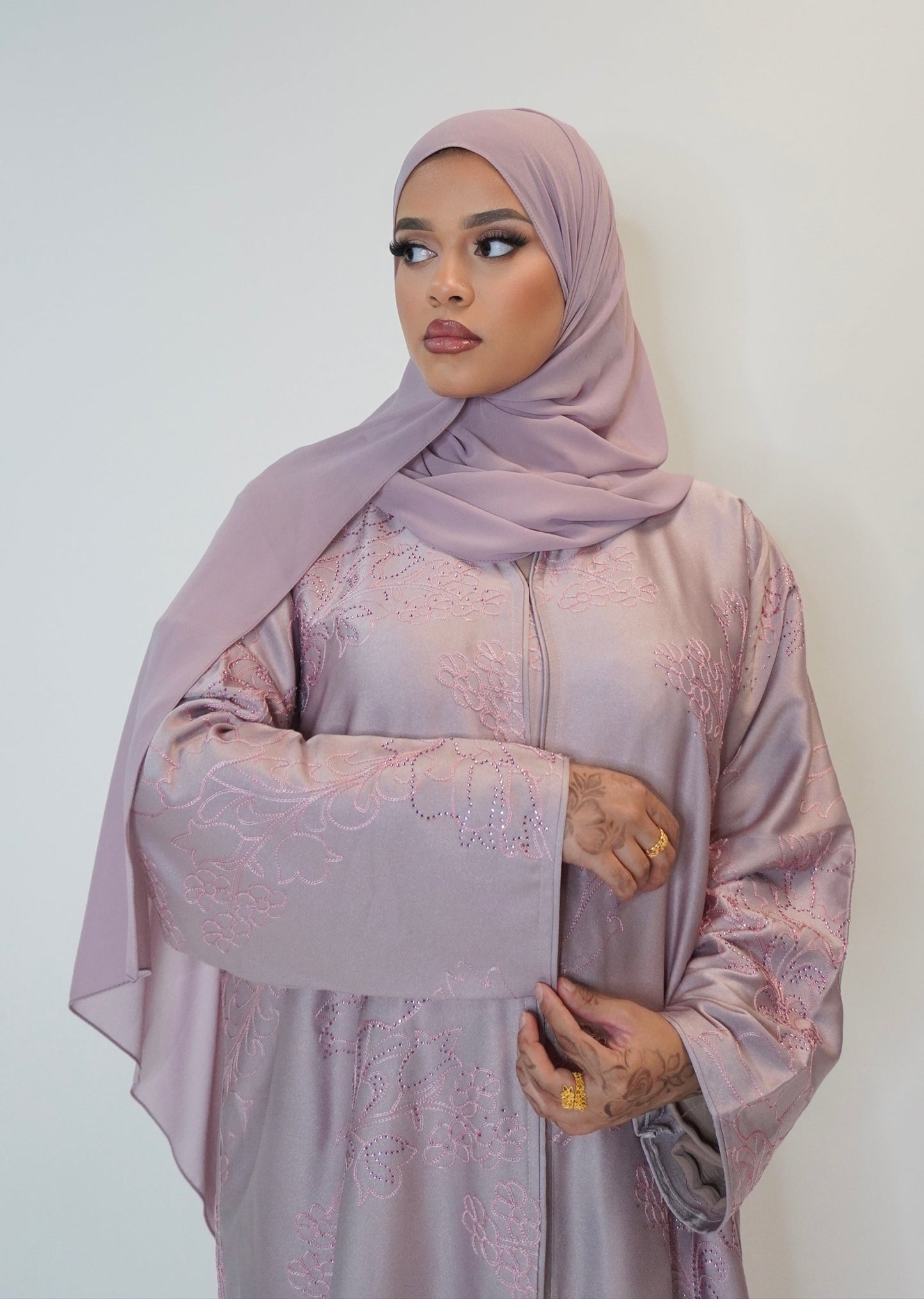 Regular price $44.99Make a statement in this elegant straight 2-piece abaya set, featuring a matching hijab. The soft white base is brought to life with bold abstract grey patterns and is delicately adorned with scattered rhinestones for a subtle shimmer. Perfect for occasions that call for a blend of modesty and modern flair, this set exudes effortless sophistication from every angle.