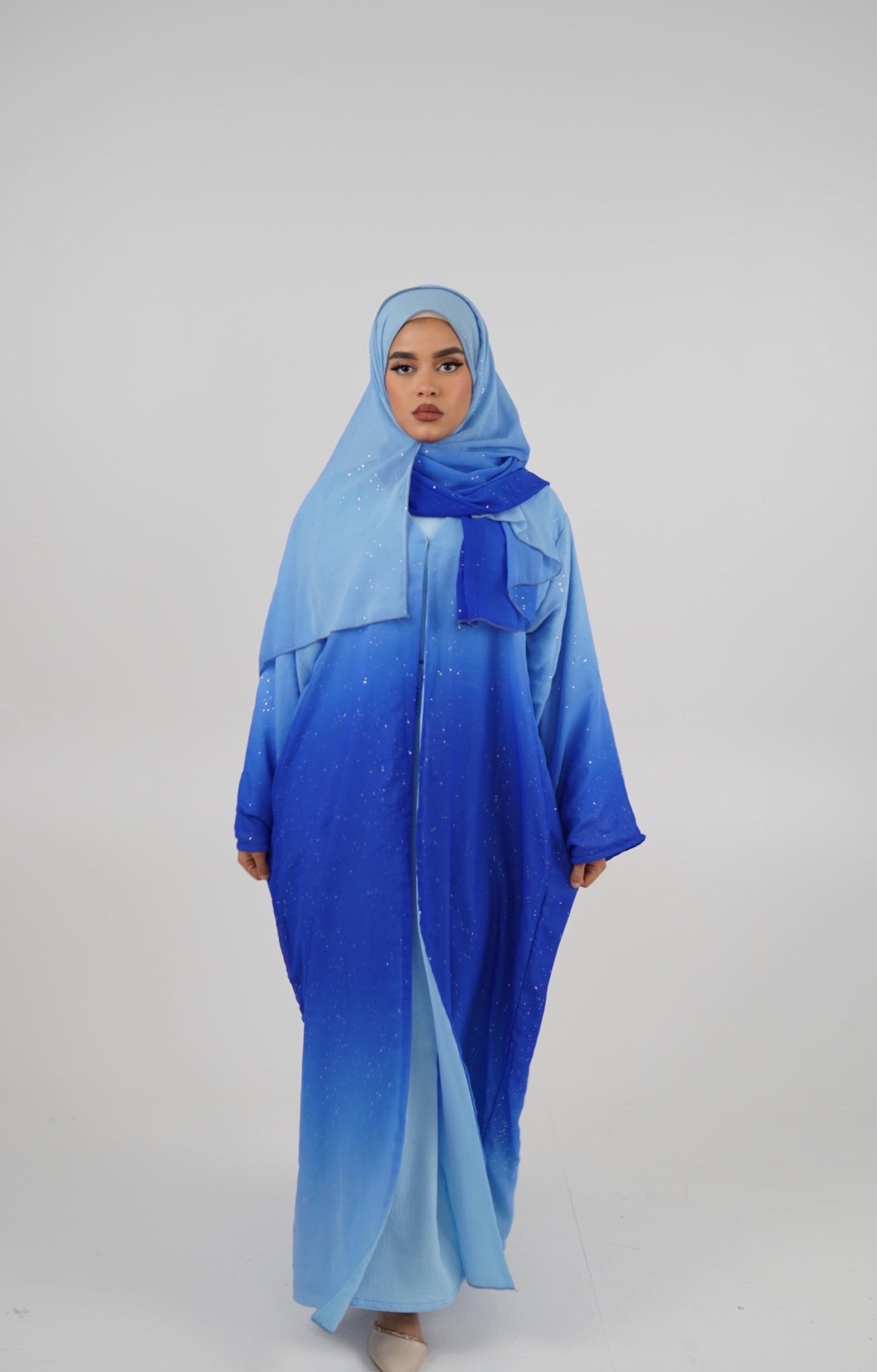 Laila Ombré Glitter Abaya Light Blue & Dark Blue