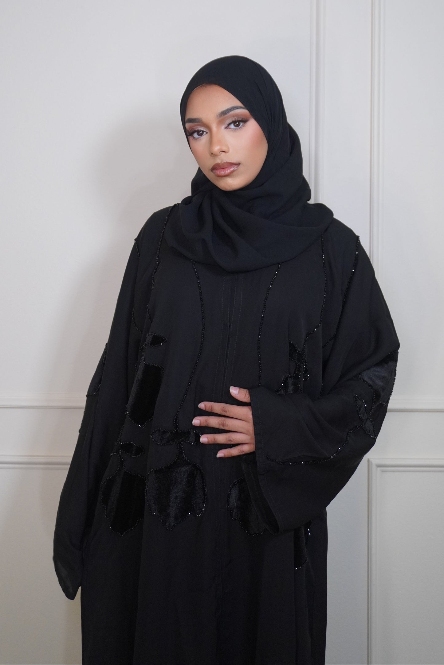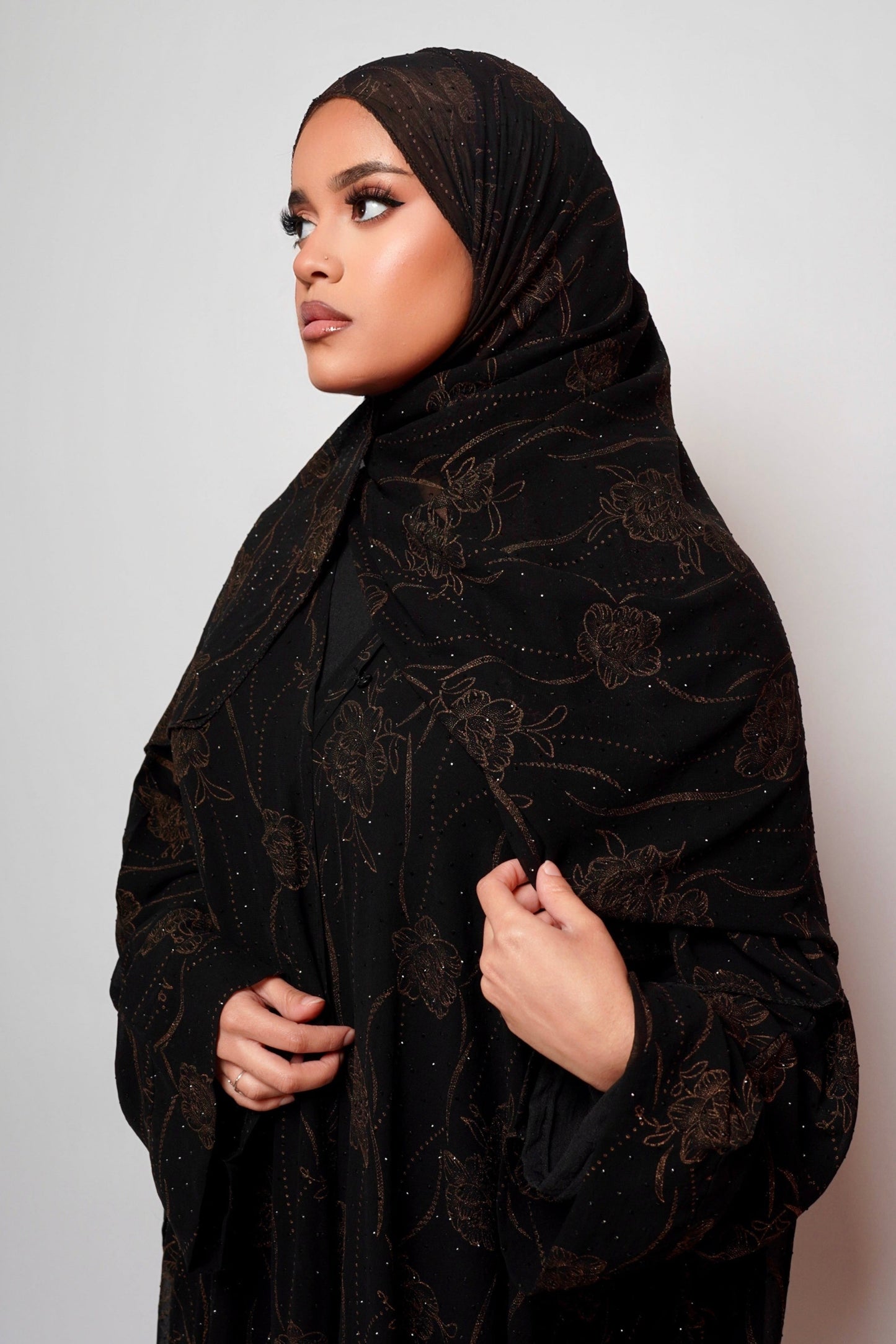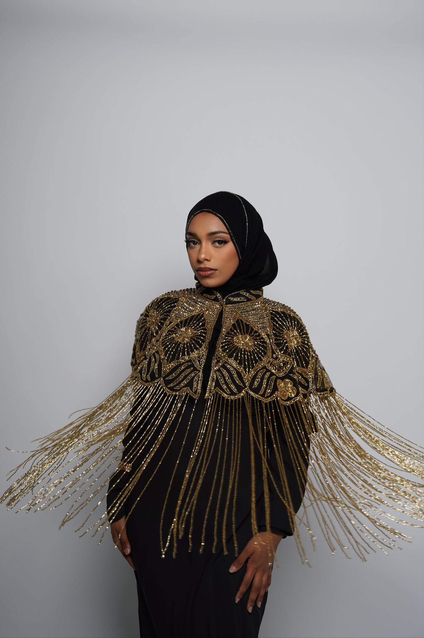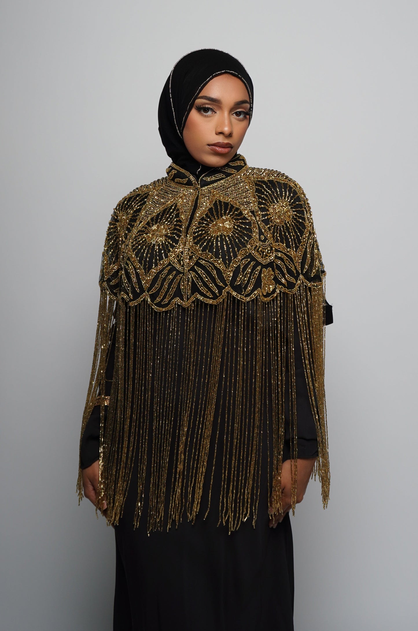 BLACK ARABESQUE THOBE WITH GOLD EMBROIDERY