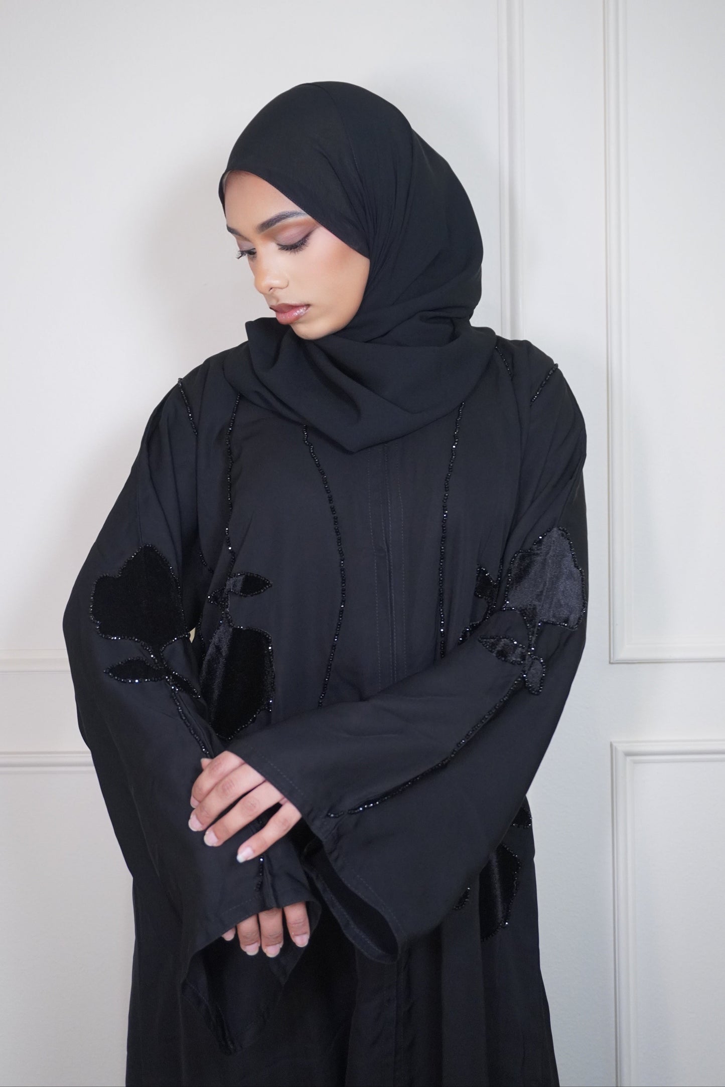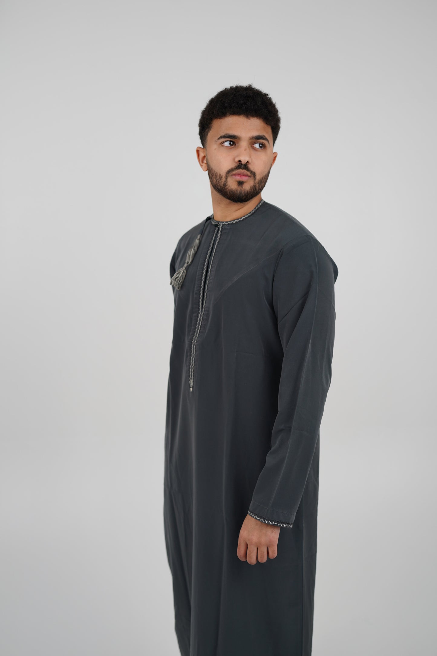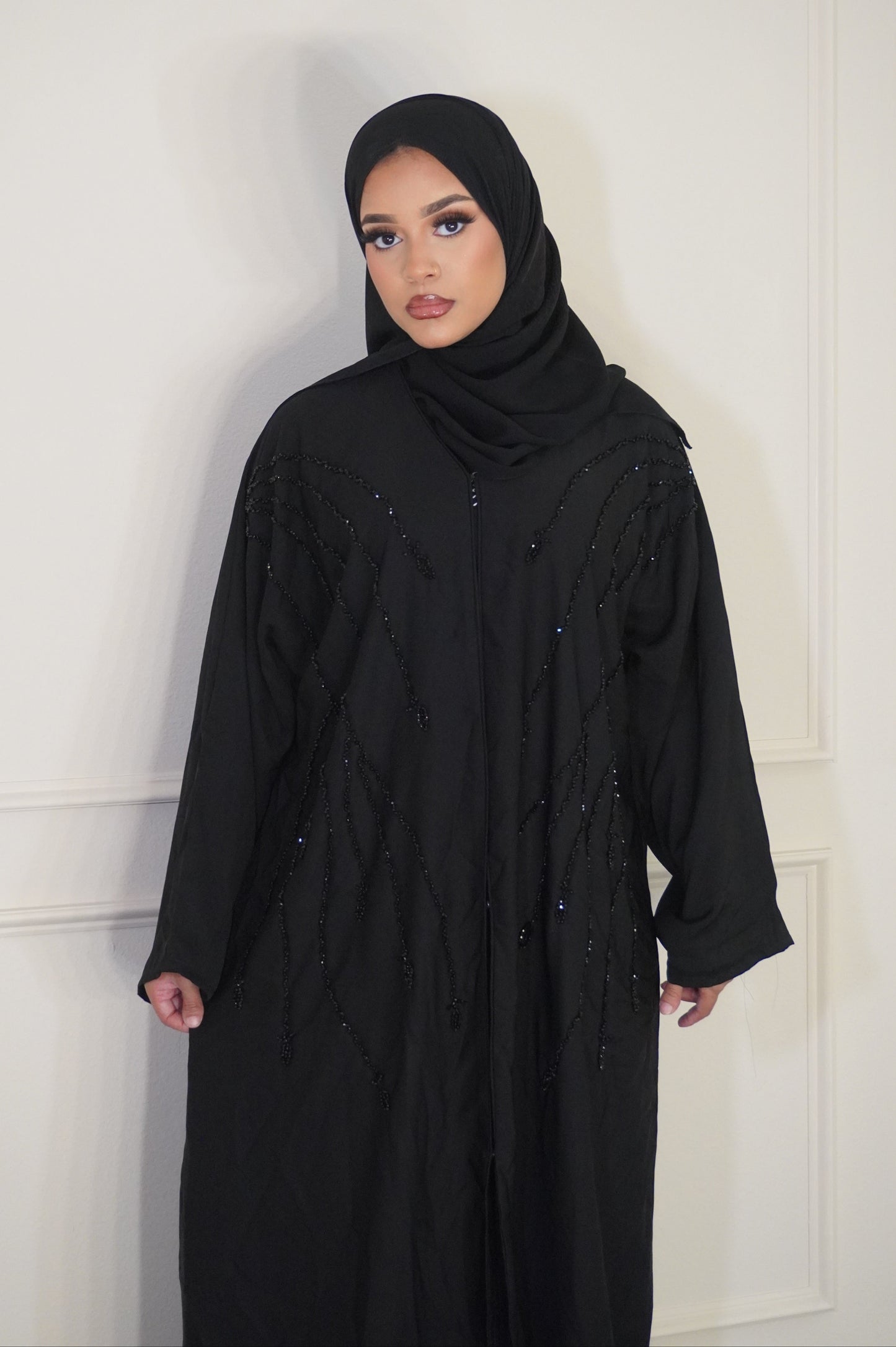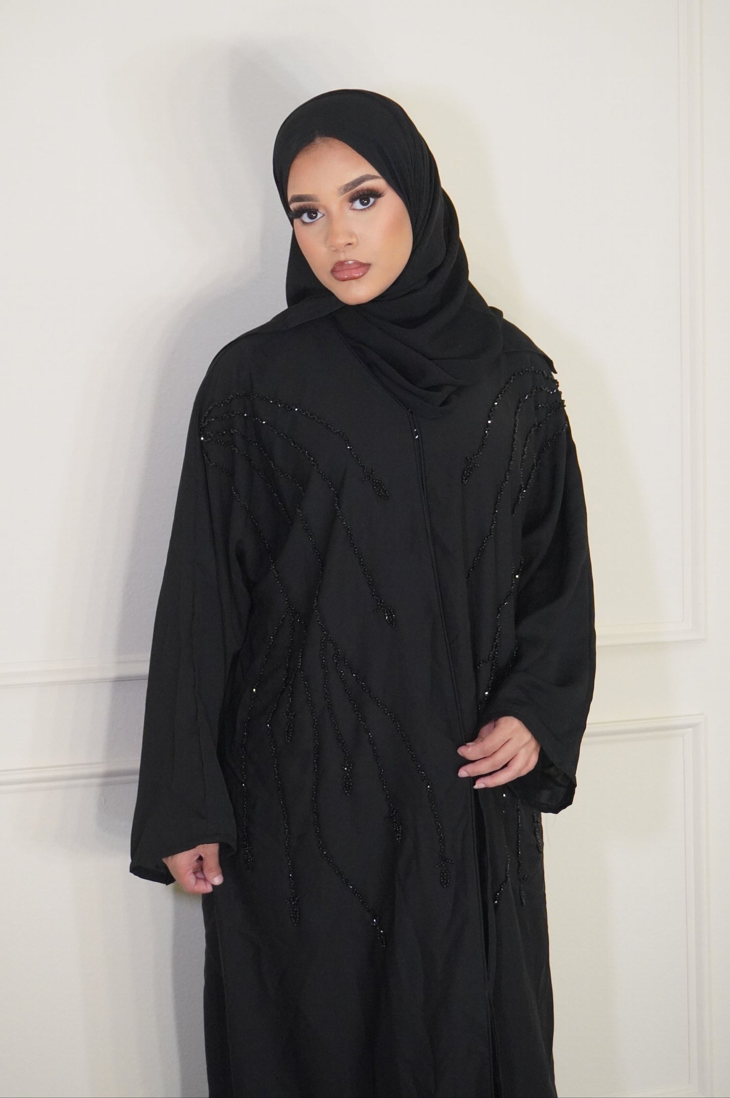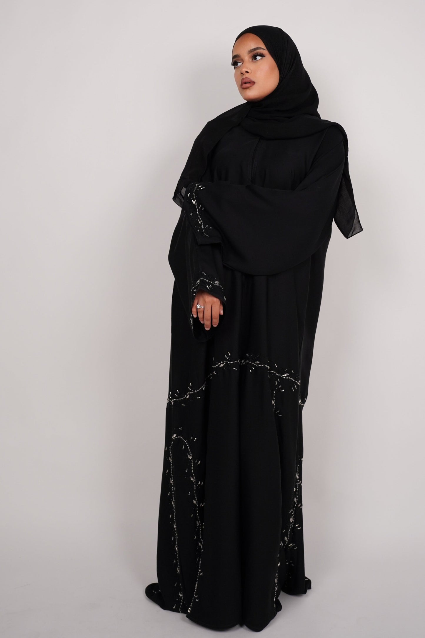 BLACK ARABESQUE THOBE WITH GOLD EMBROIDERY