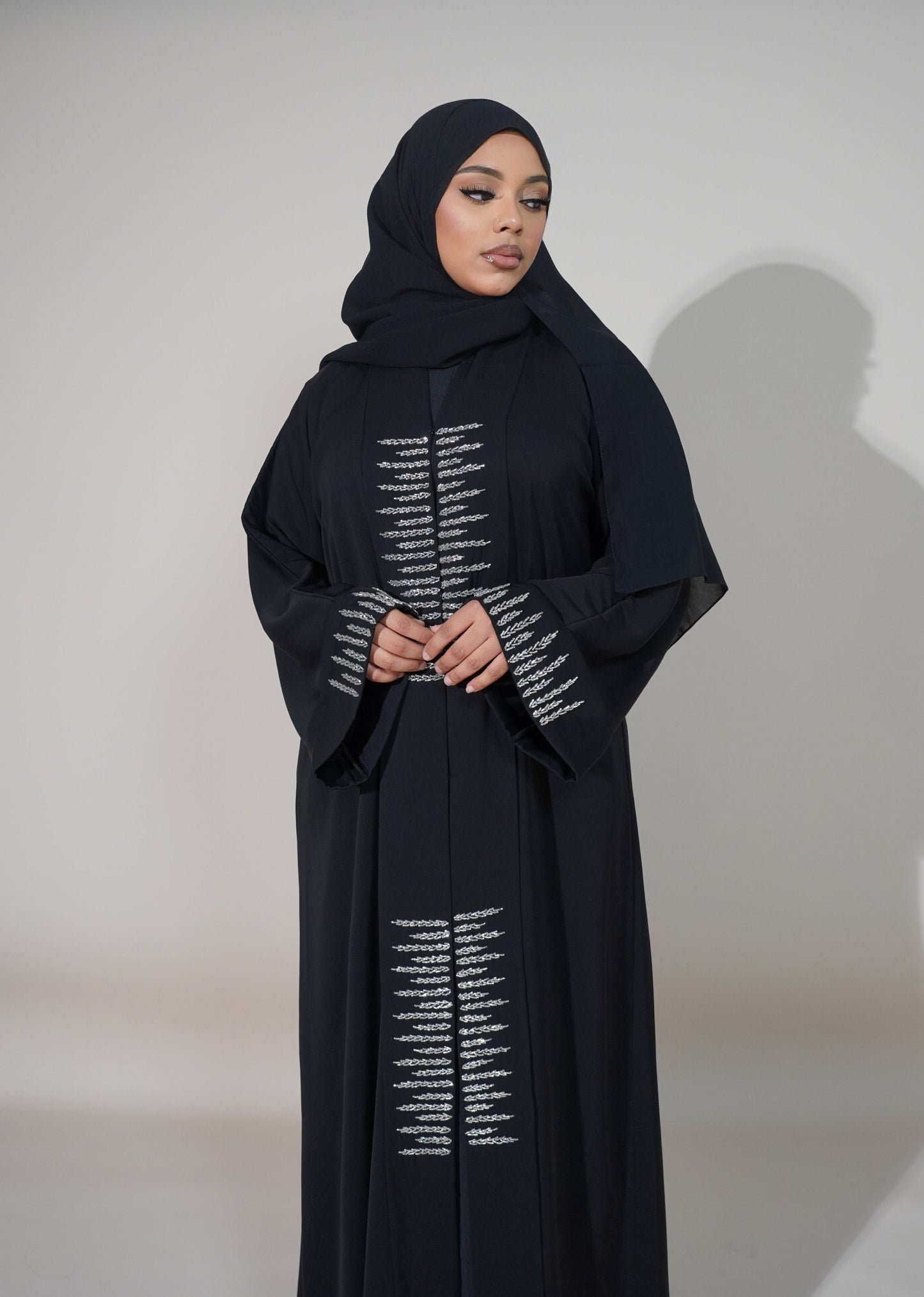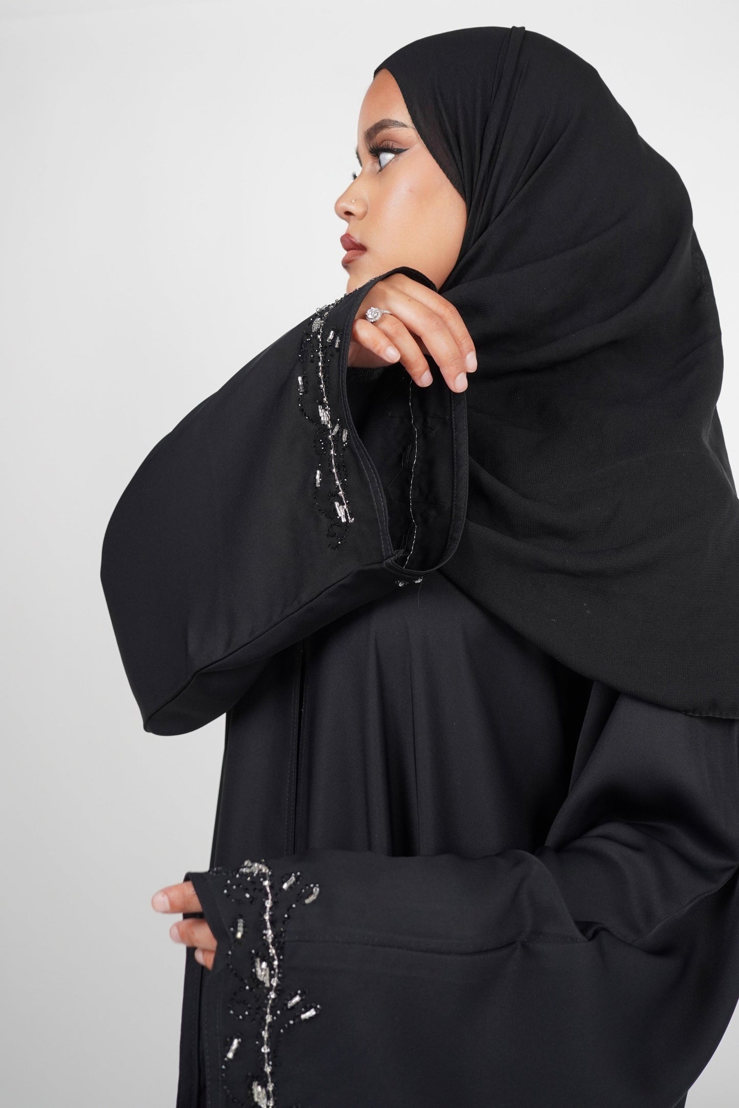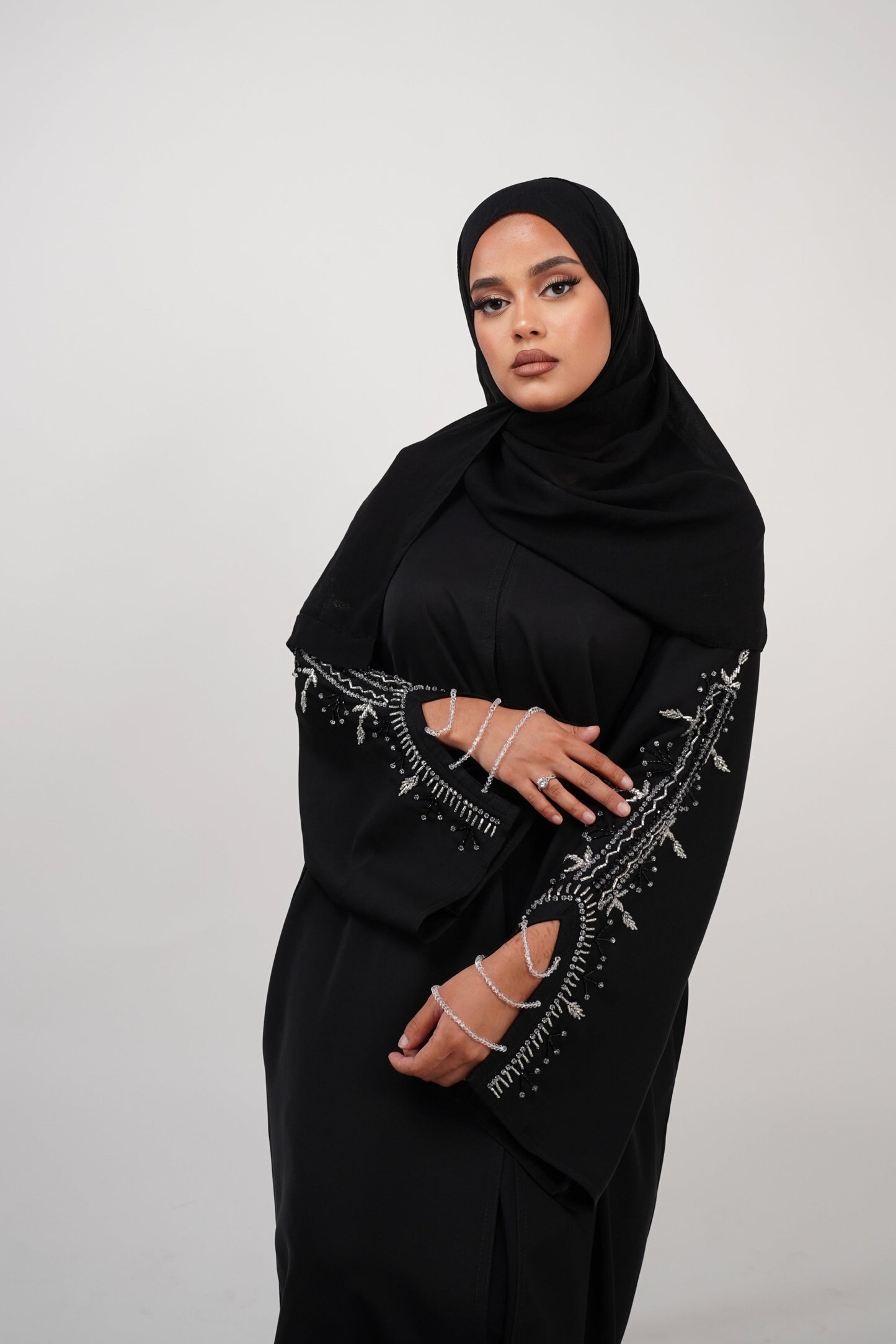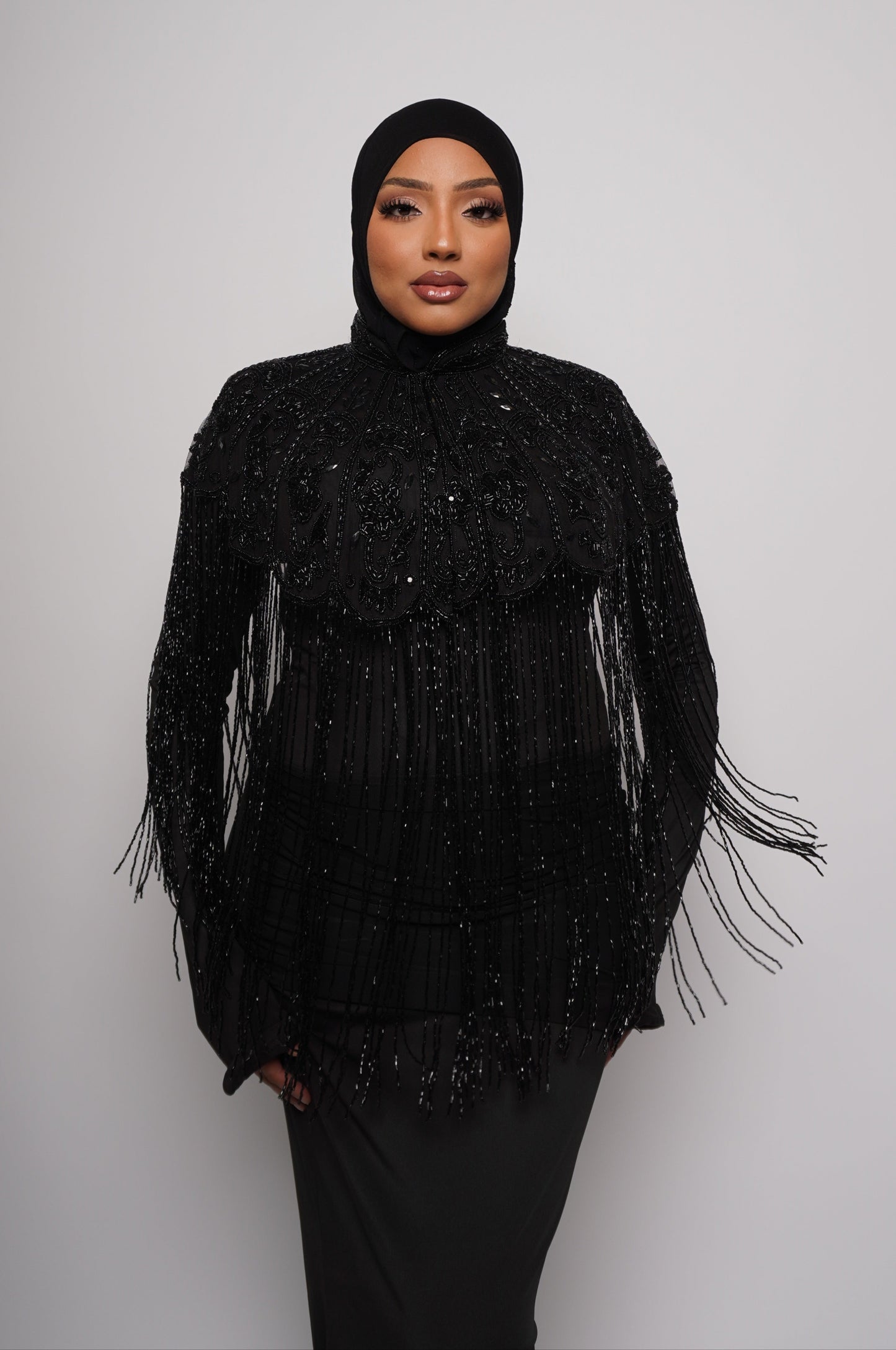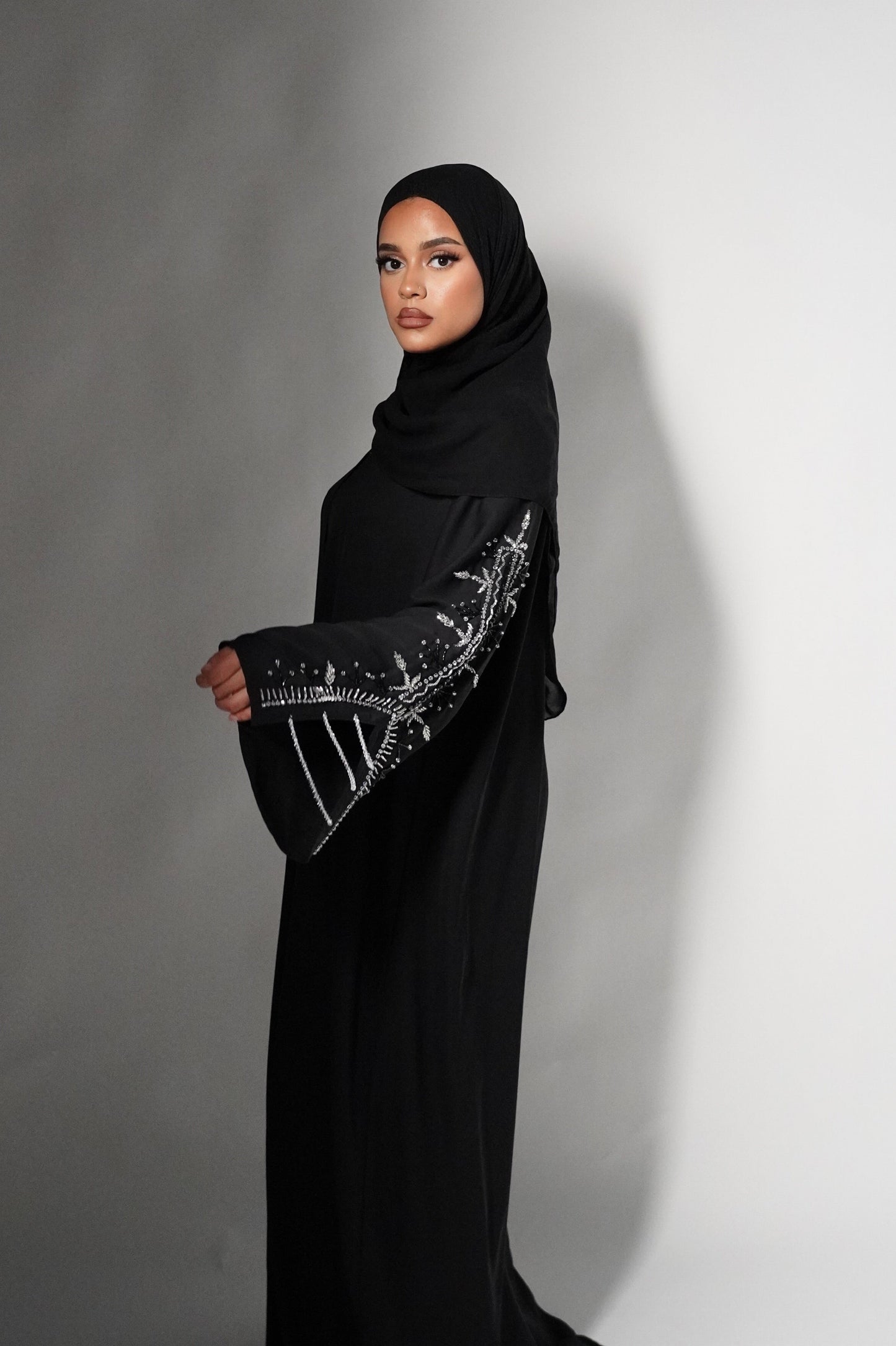 BLACK ARABESQUE THOBE WITH GOLD EMBROIDERY