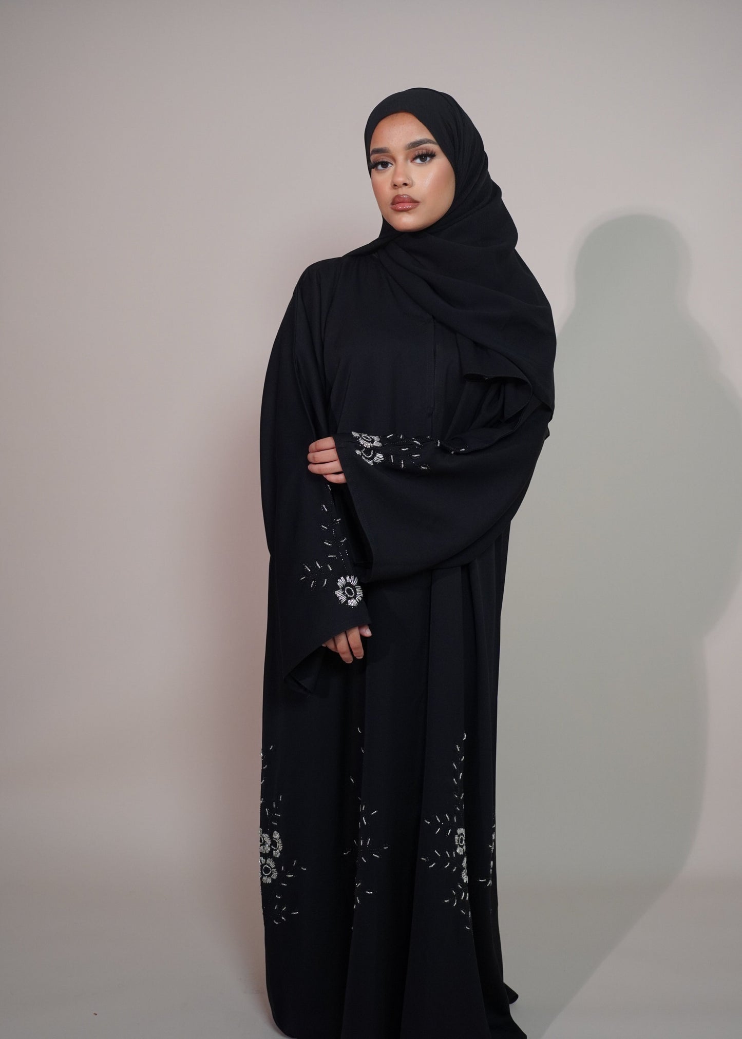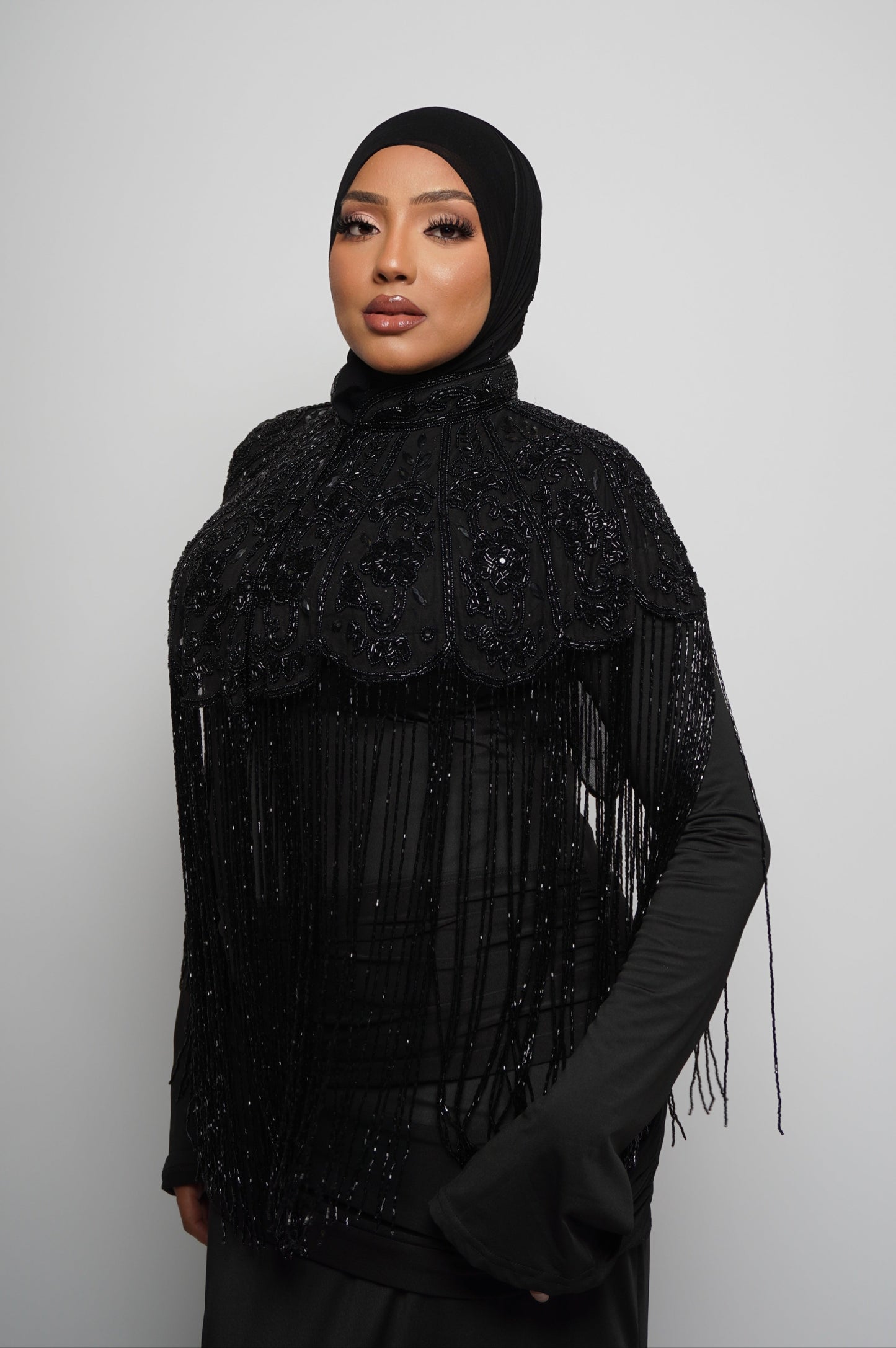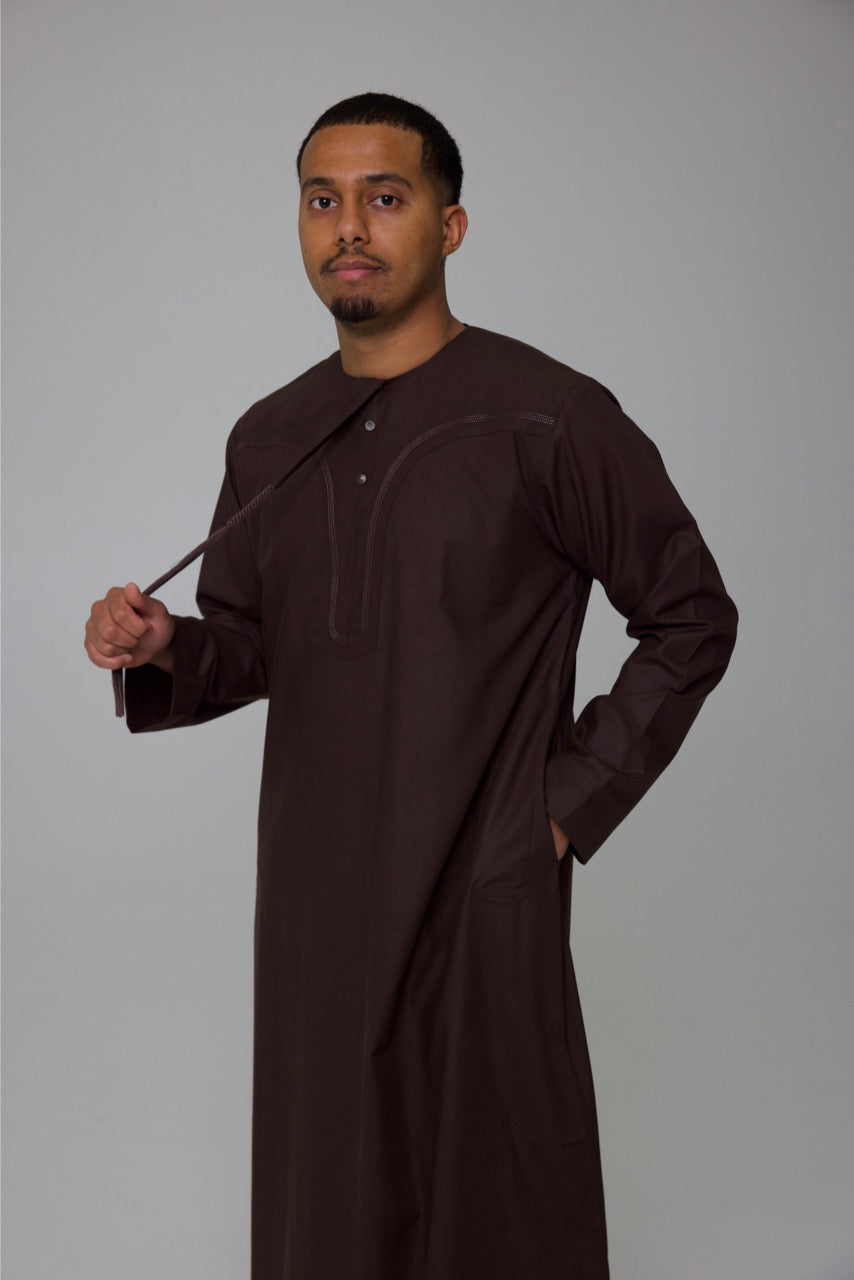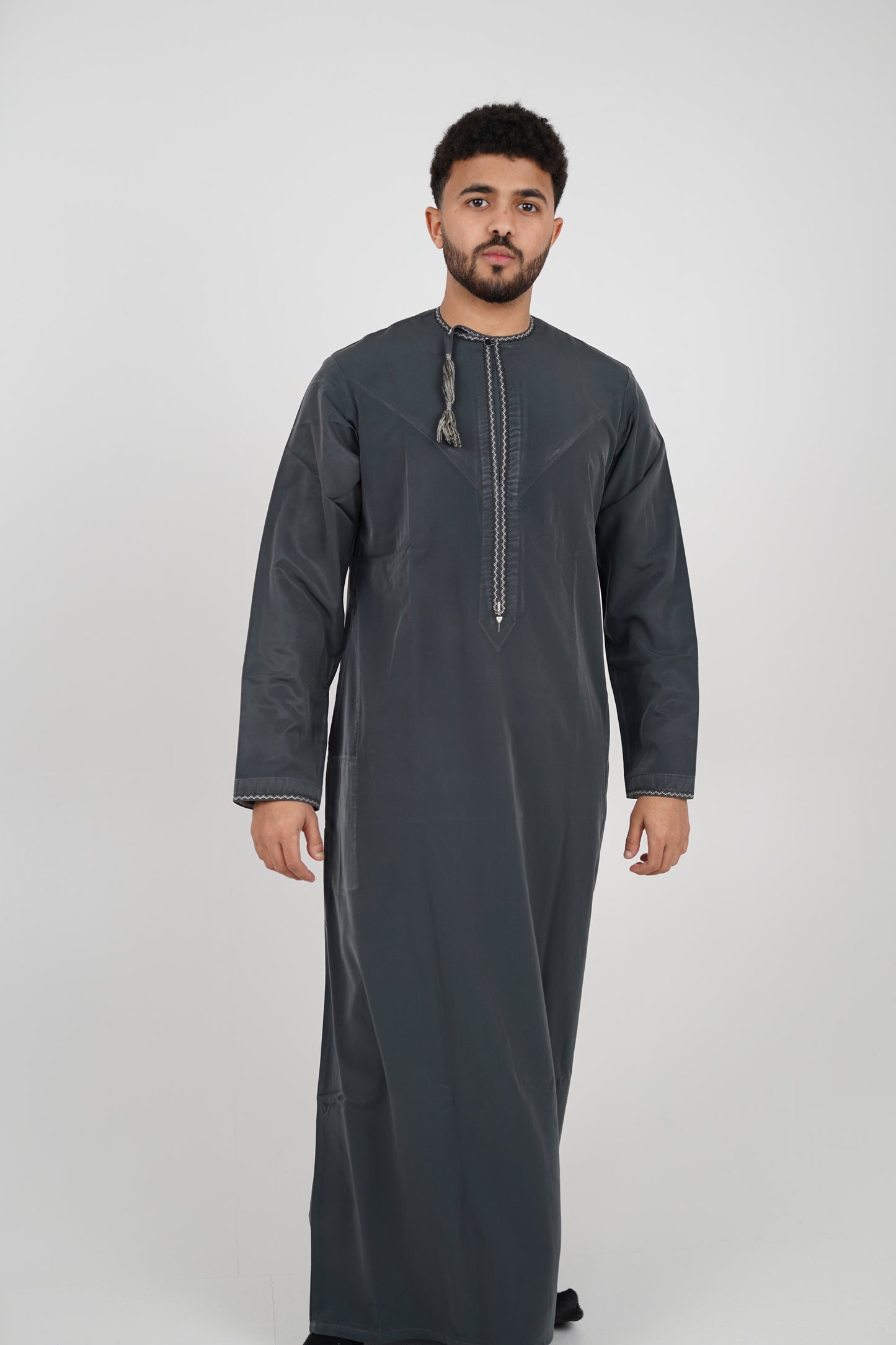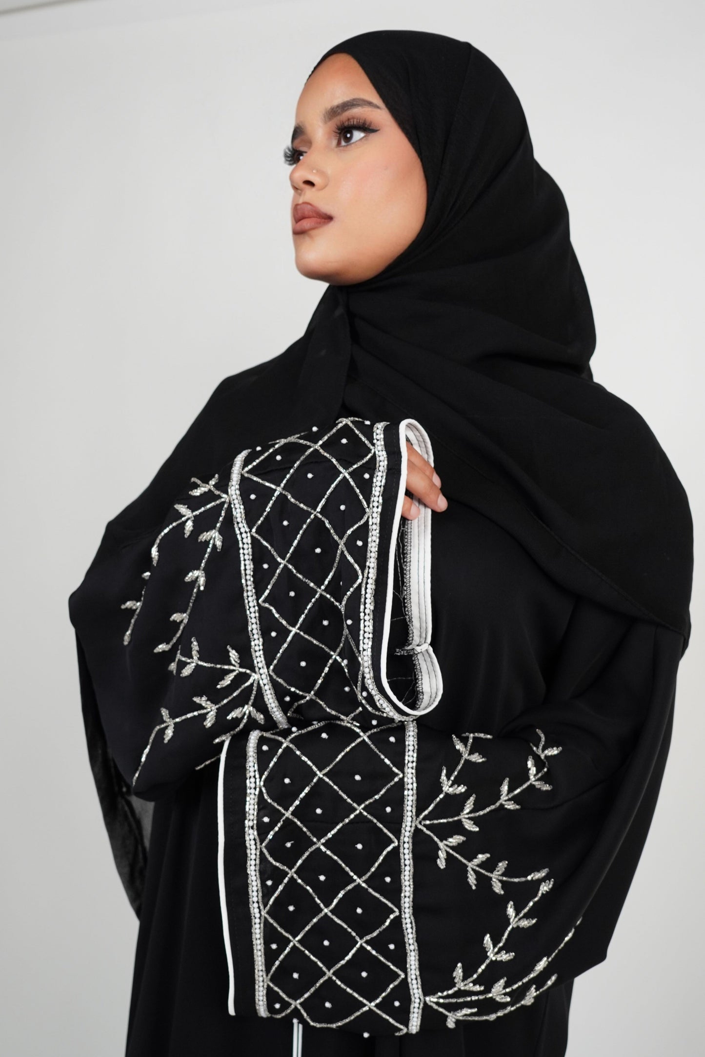 BLACK ARABESQUE THOBE WITH GOLD EMBROIDERY