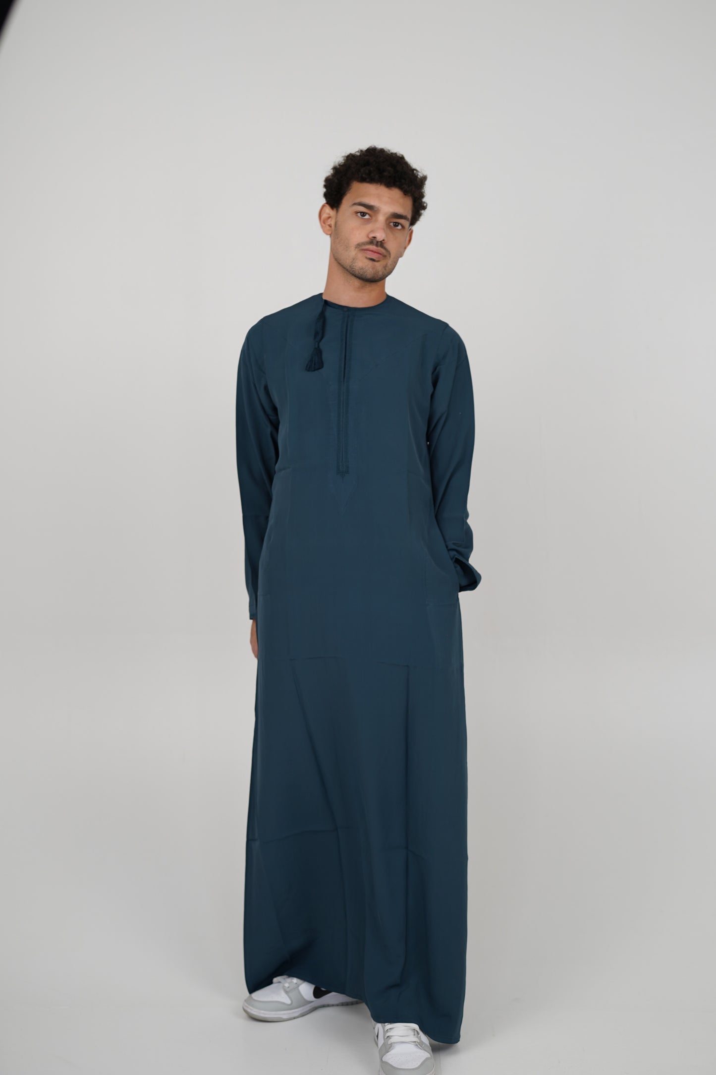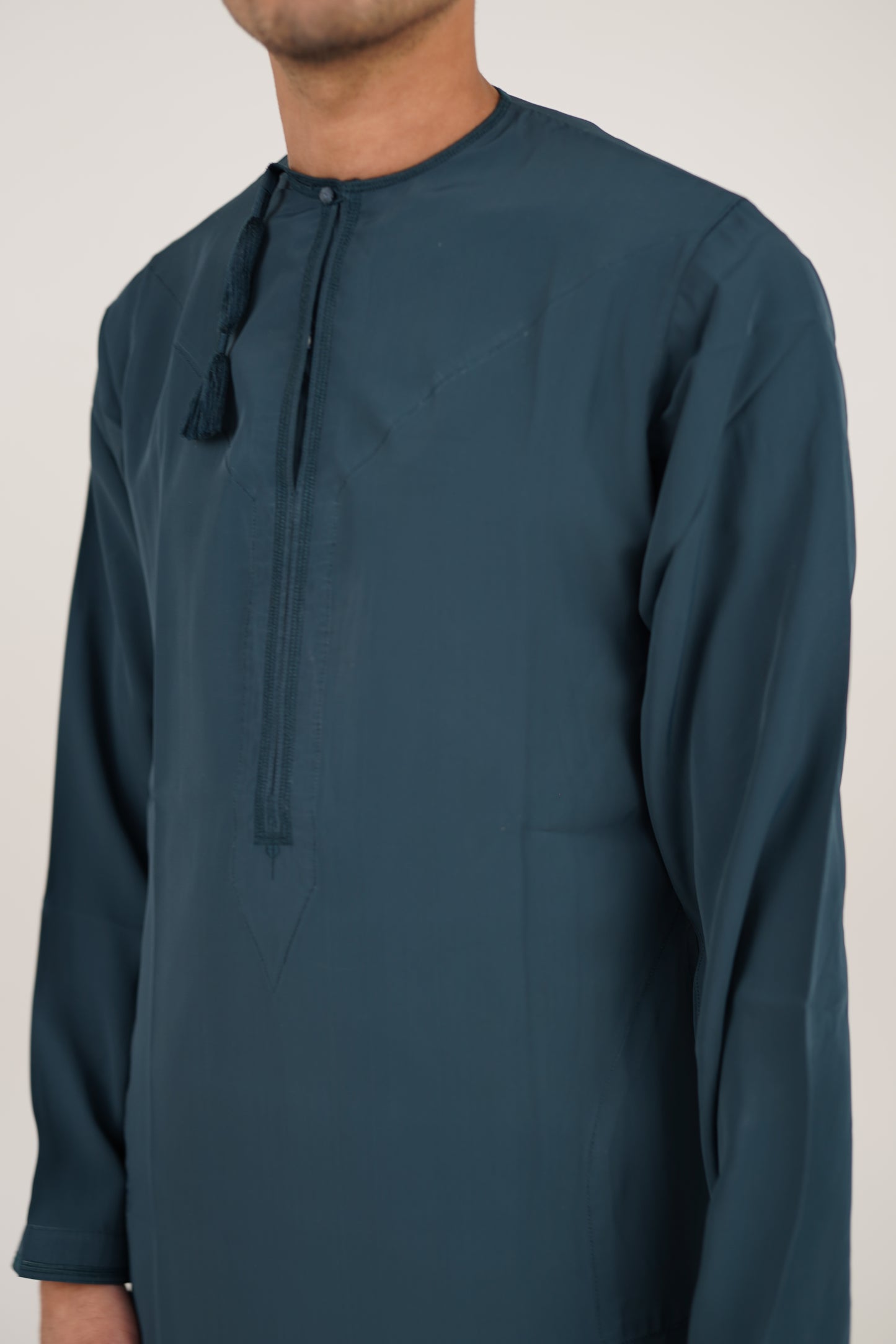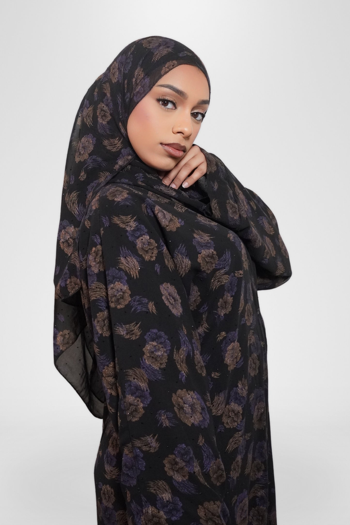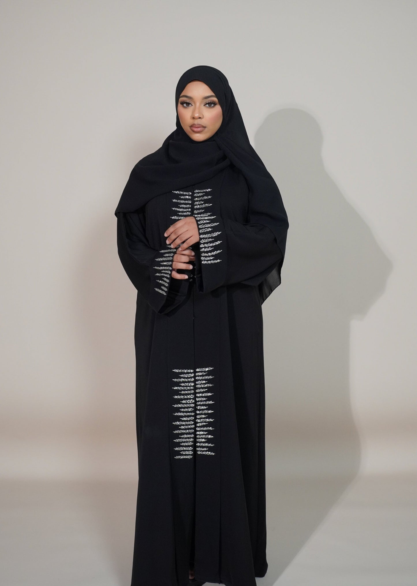 BLACK ARABESQUE THOBE WITH GOLD EMBROIDERY