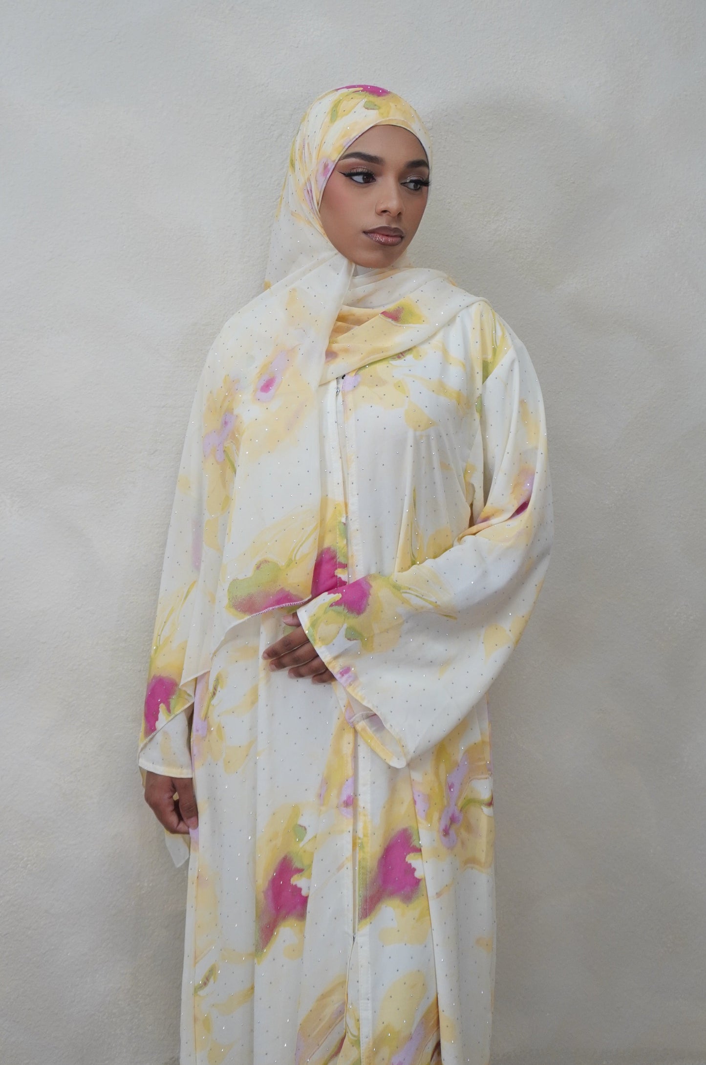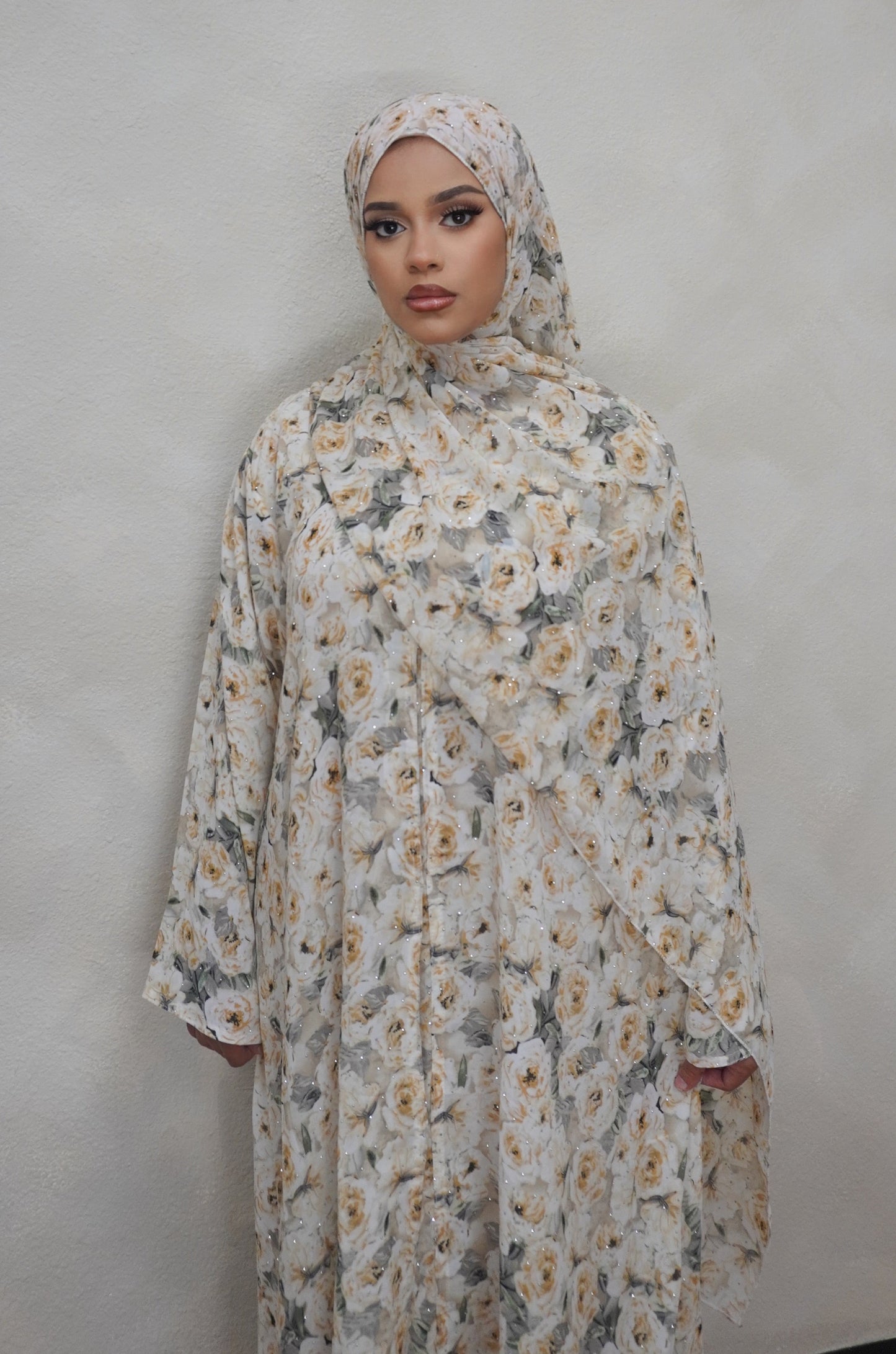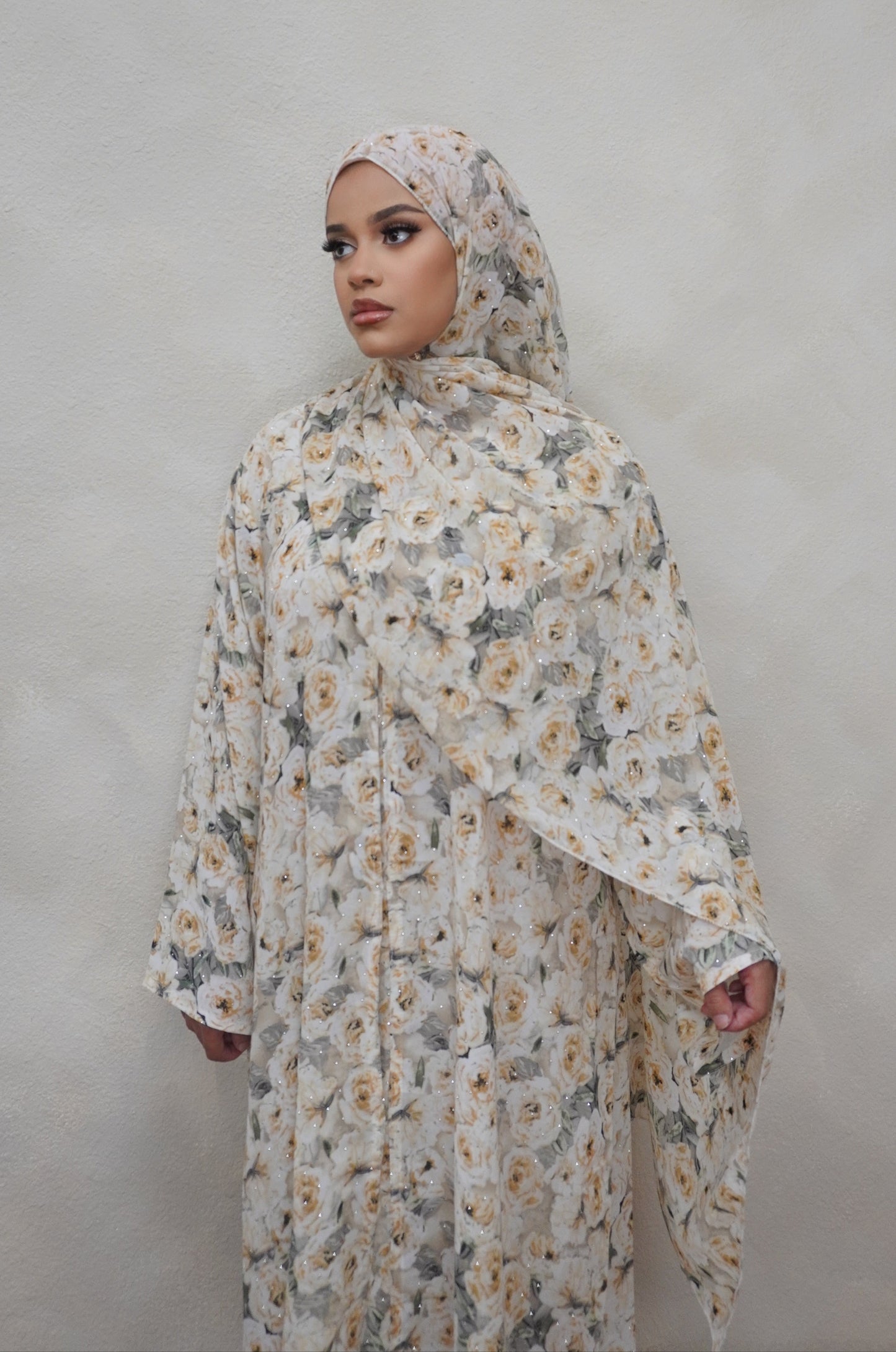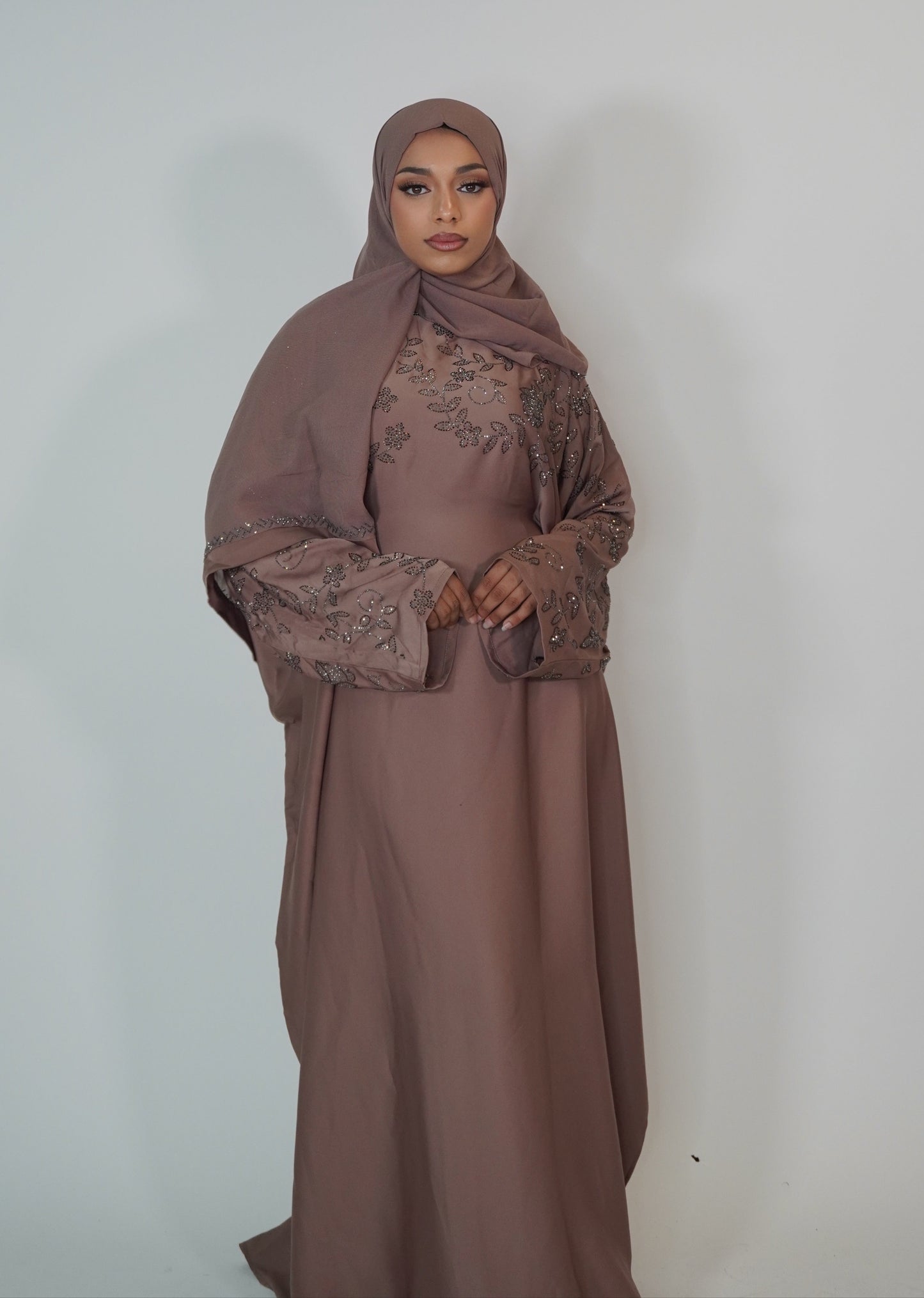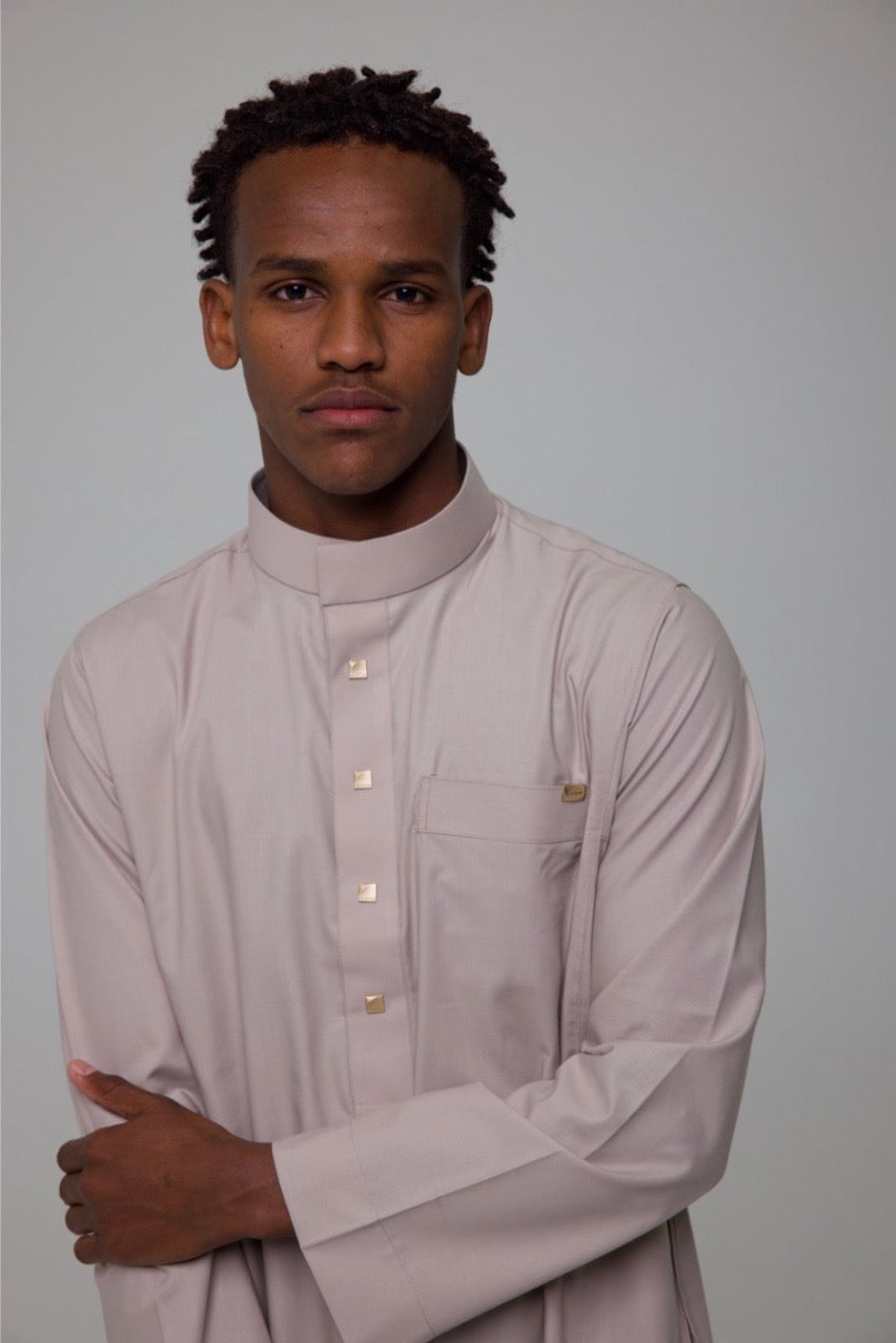 BLACK ARABESQUE THOBE WITH GOLD EMBROIDERY