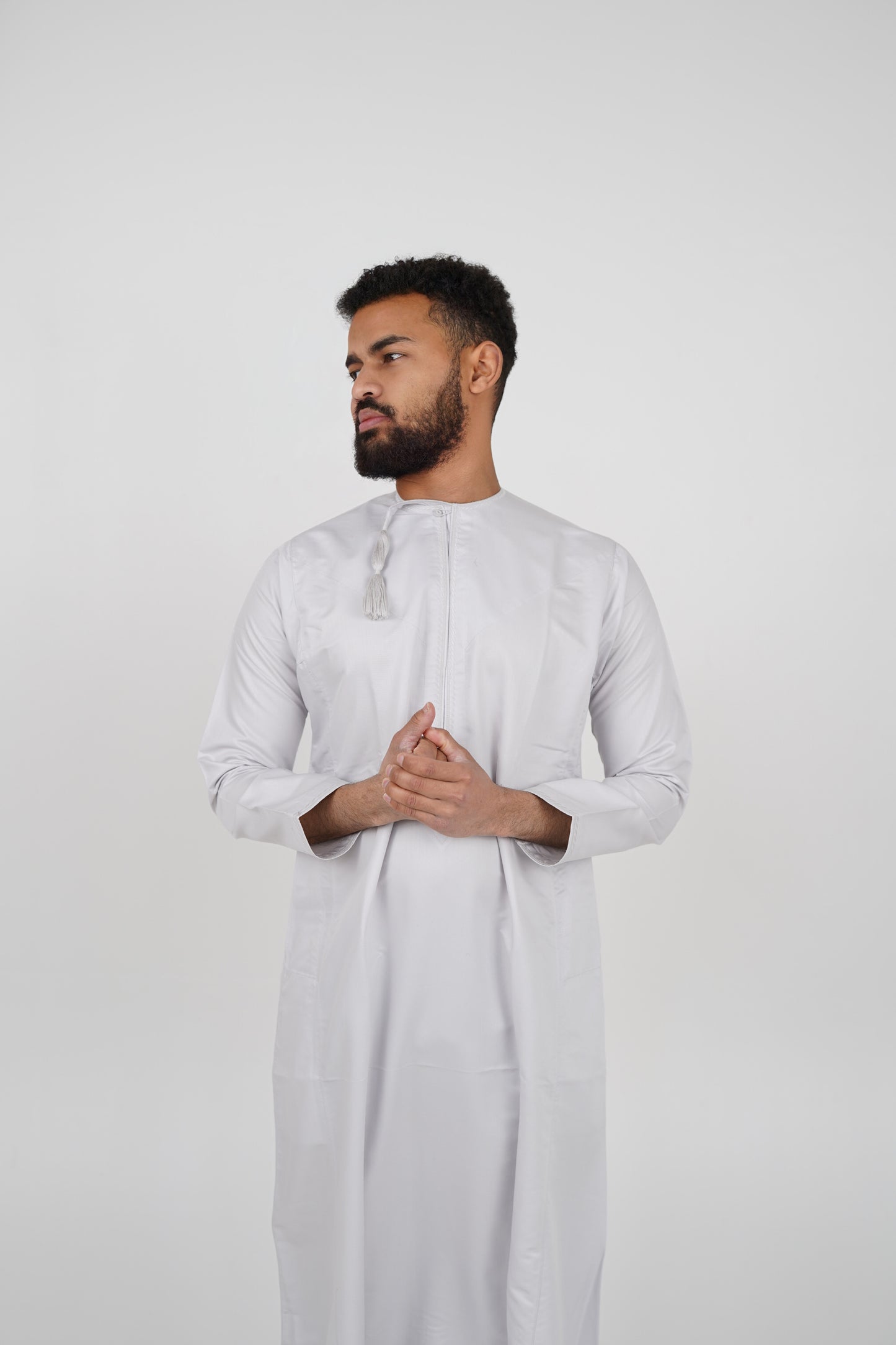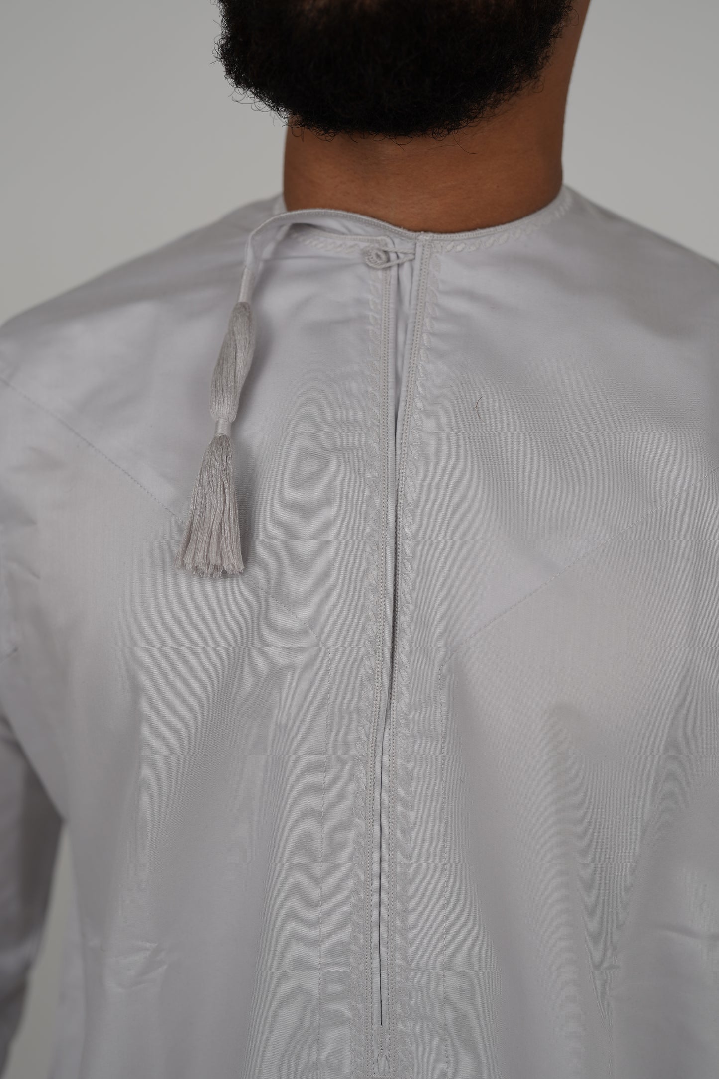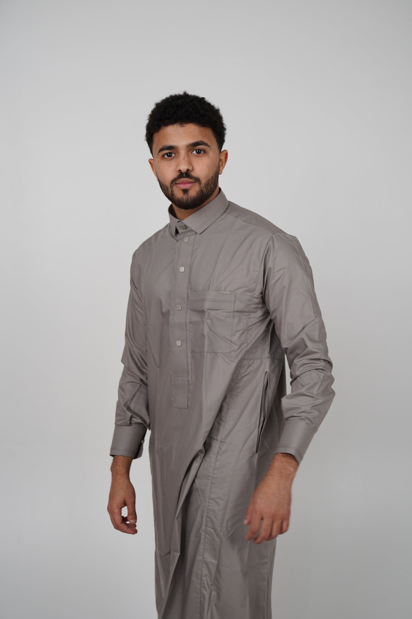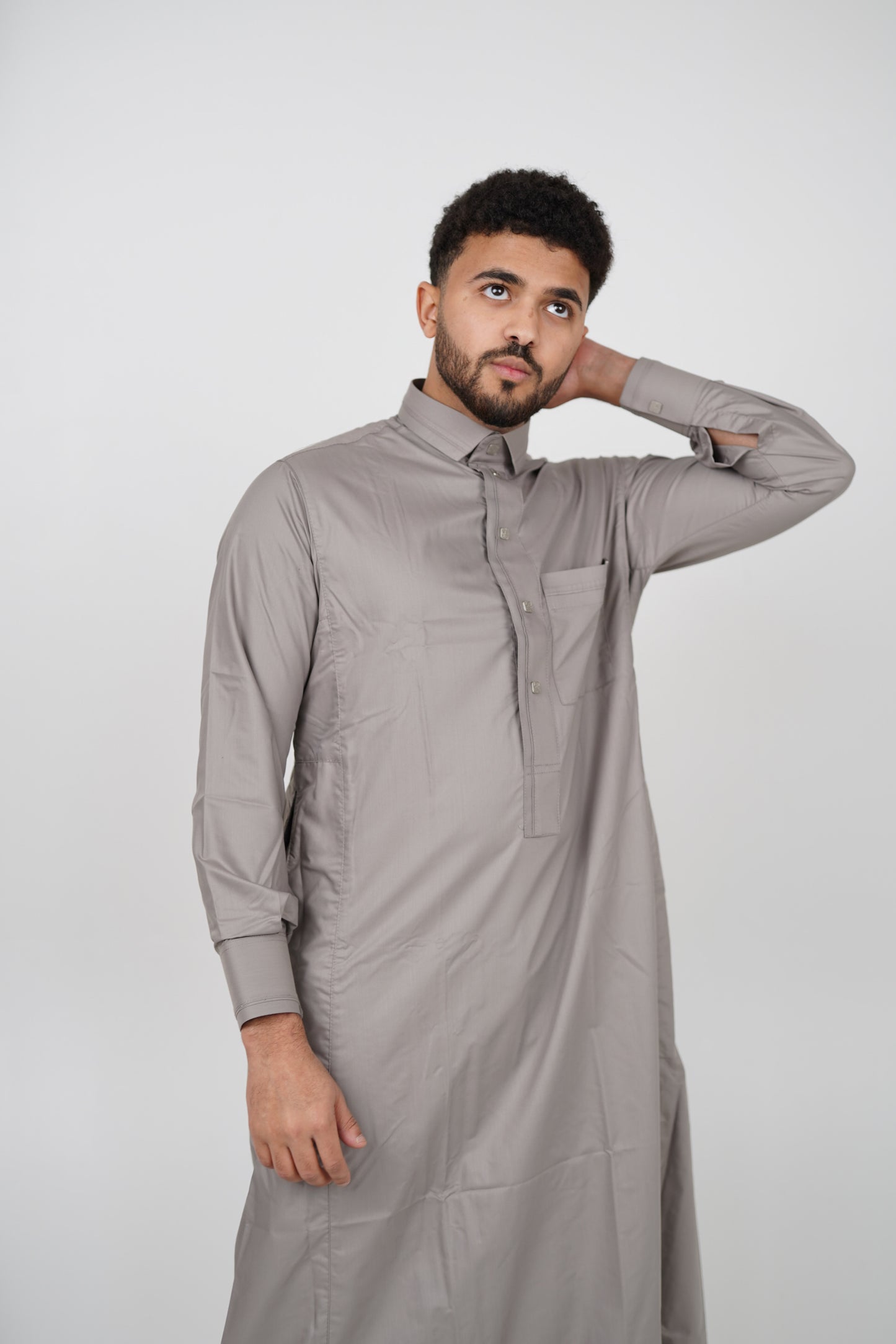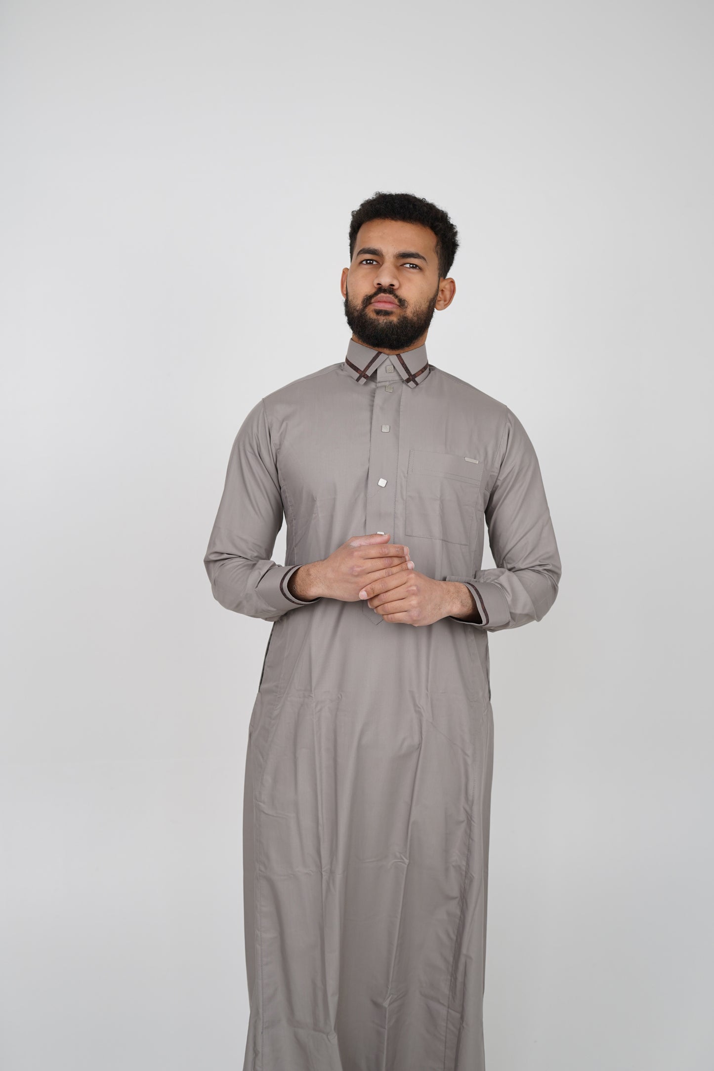 Pale Taupe with Collar stripe Qatari Style Thobe