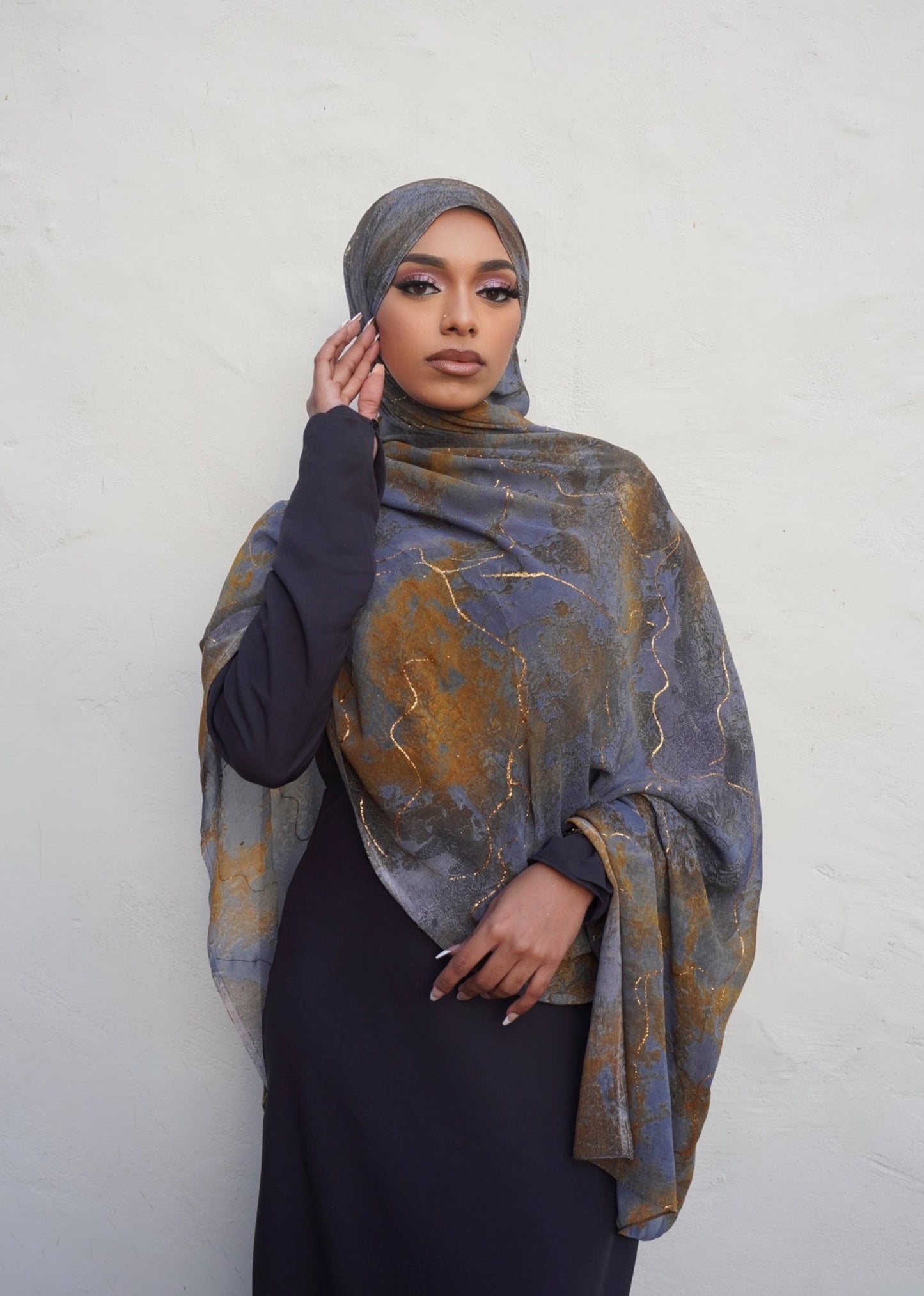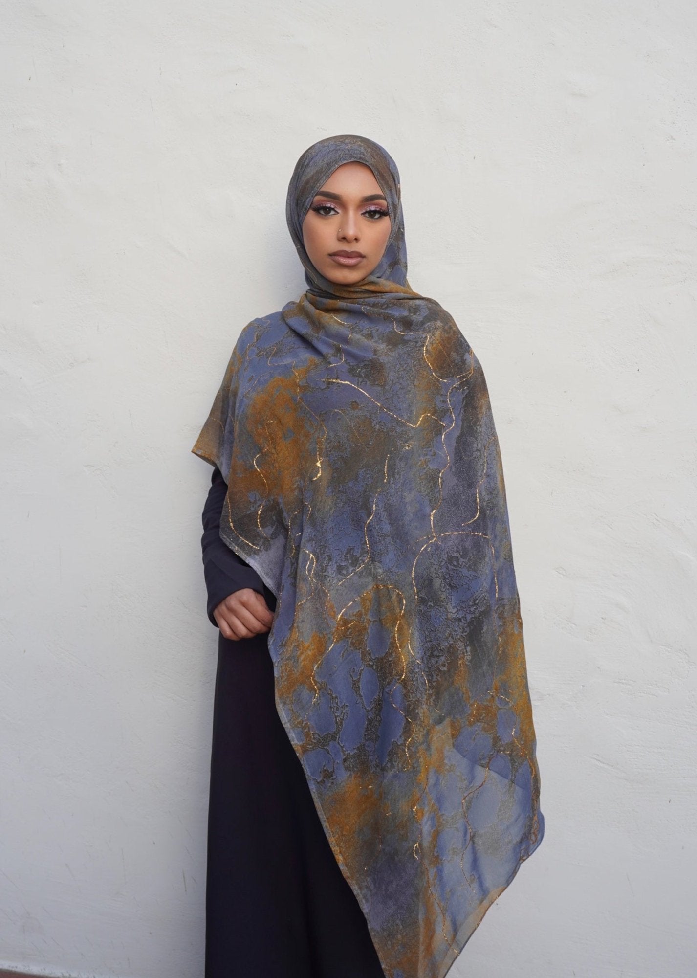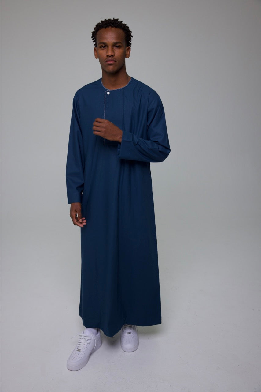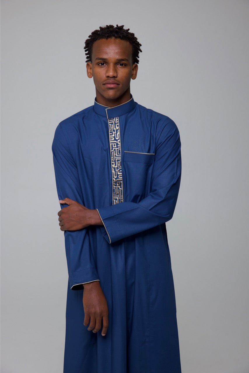 NOUVEAU BLUE ARABESQUE THOBE WITH GOLD EMBROIDERY