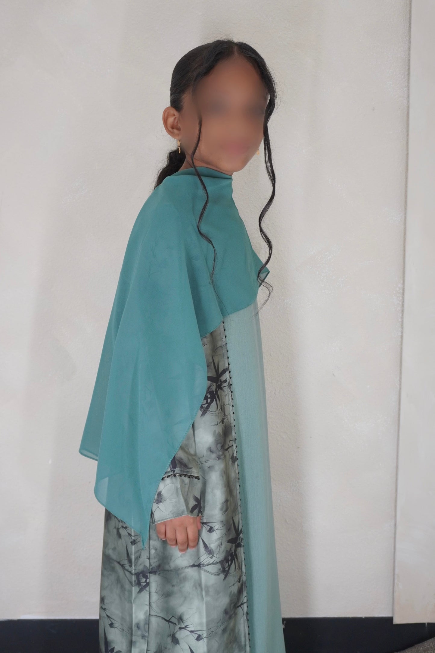 Amira Kids Floral Abaya - Sage & Teal