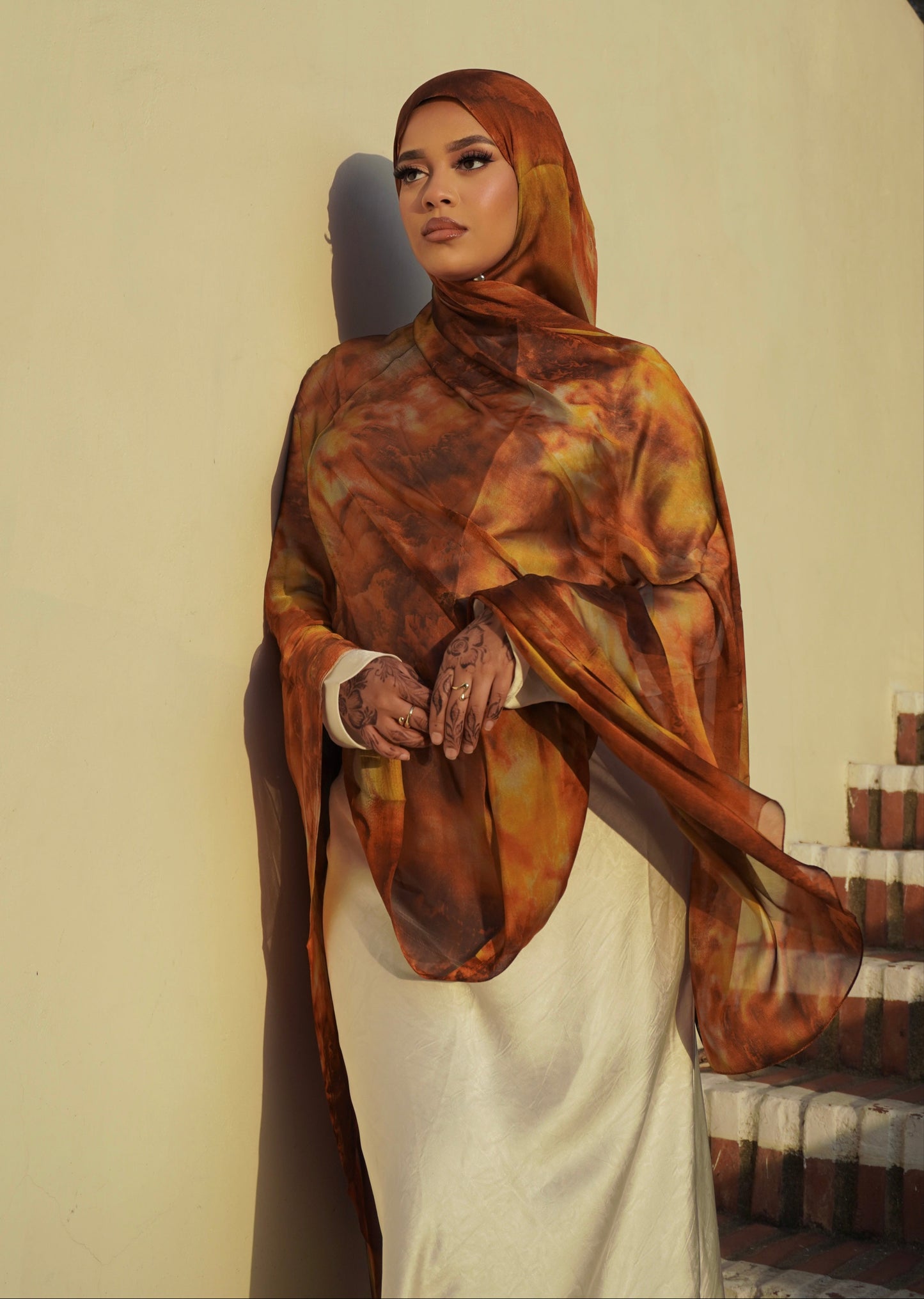Our Solaris print hijab features a stylish satin chiffon watercolor design and raw edges for a seamless lay. Perfect for staying on-trend while maintaining modesty.