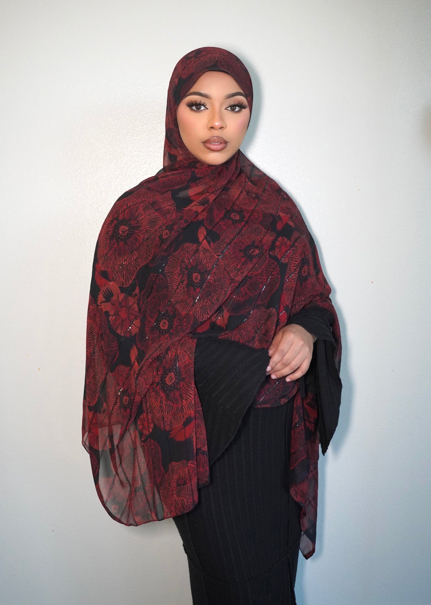 Our Burgora print hijab features a stylish satin chiffon watercolor design and raw edges for a seamless lay. Perfect for staying on-trend while maintaining modesty.
