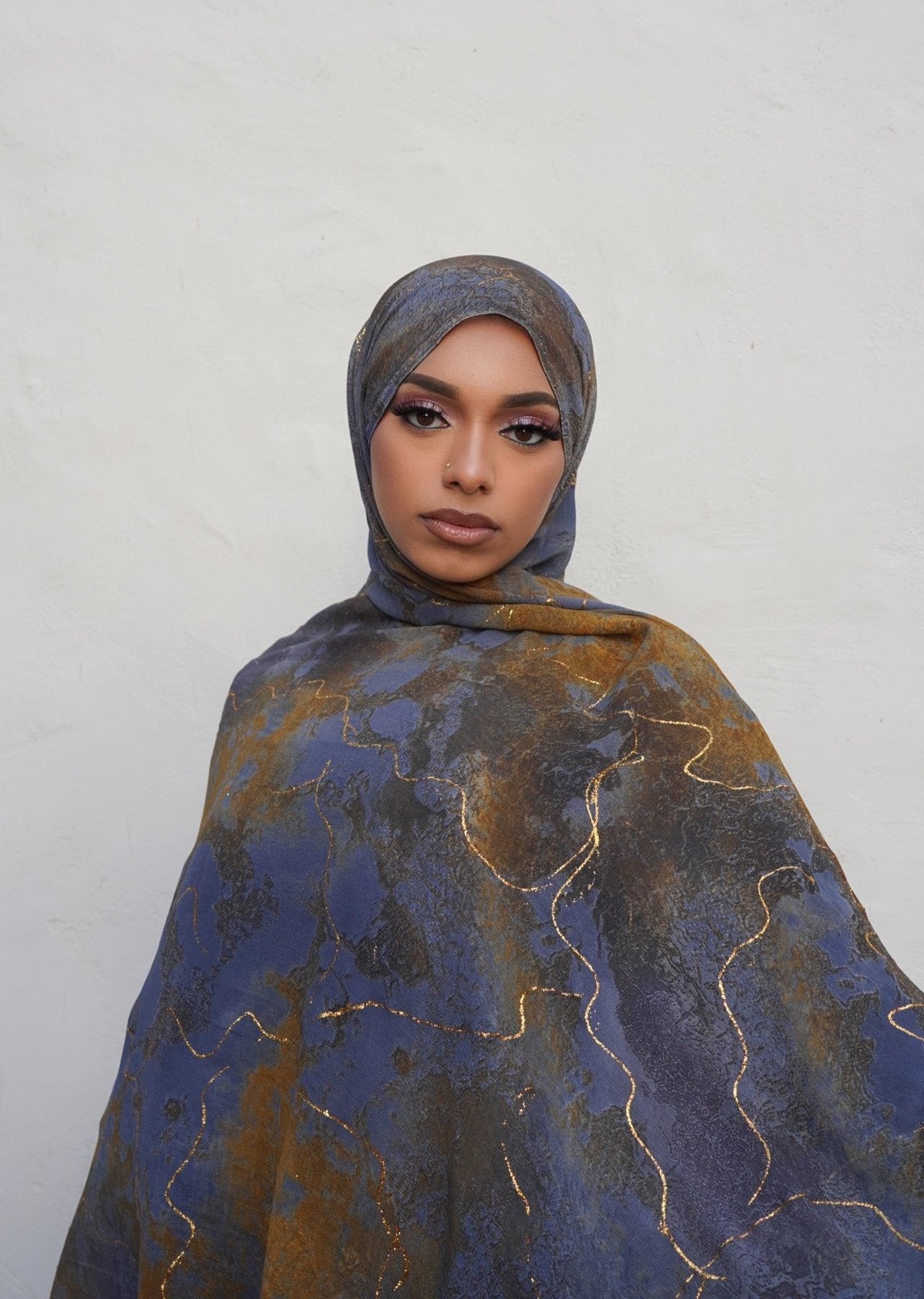 Our Orvara print hijab features a stylish satin chiffon watercolor design adorned with delicate stone embellishments, and raw edges for a seamless lay. Perfect for staying on-trend while maintaining modesty. This hijab adds a touch of luxury to your everyday look.